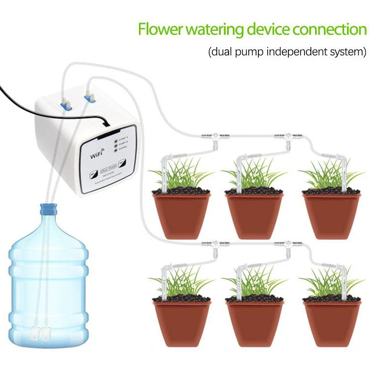 Конструкция с двойным насосом, независимая работа, классификация полива растений, полив большего количества растений.