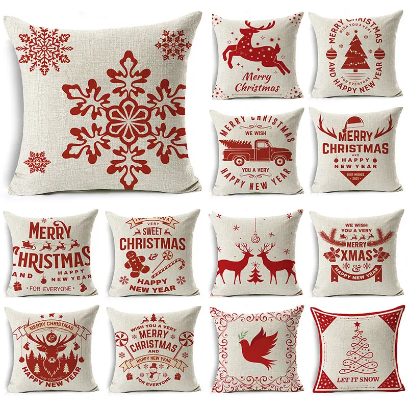 Рождественская Подушка Чехол Наволочка льняная Подушка Чехол рождес...