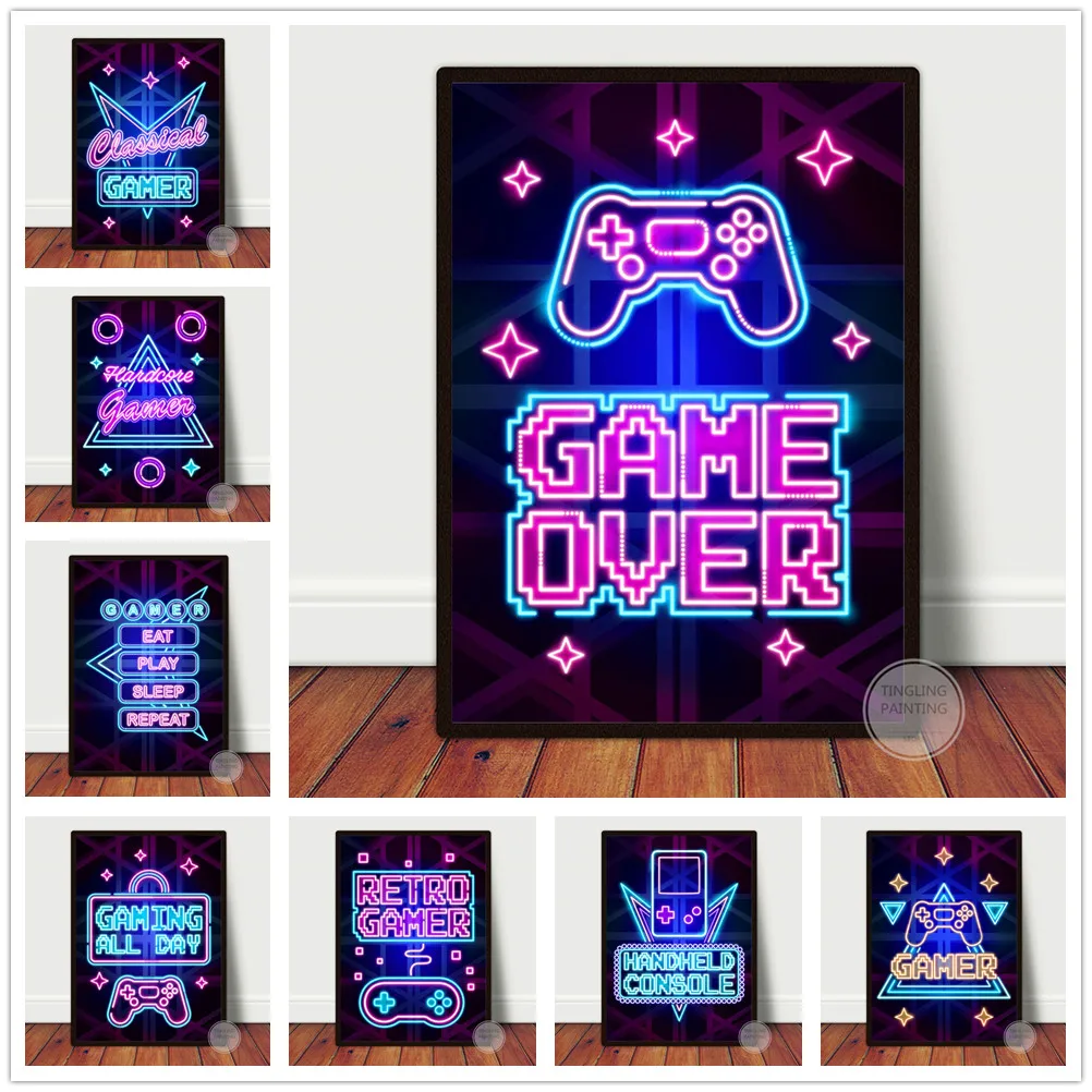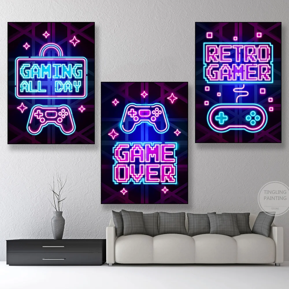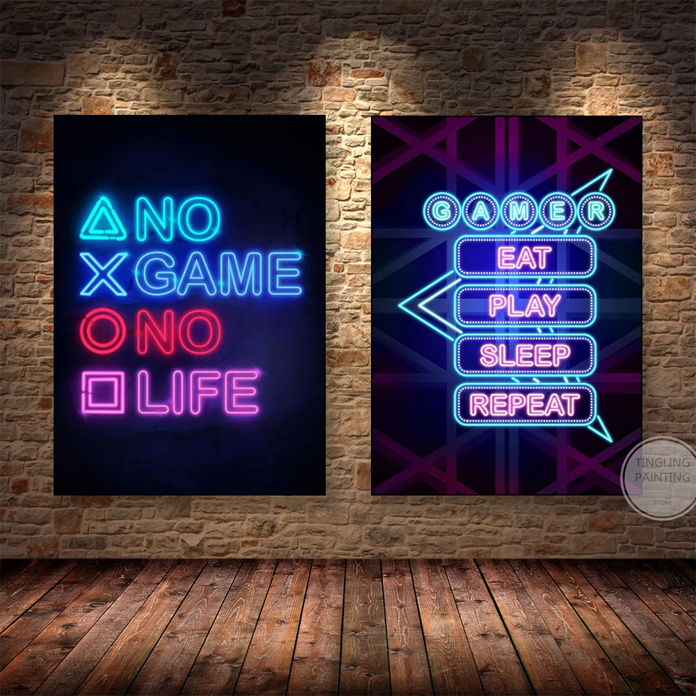 Настенные разноцветные неоновые постеры с надписью EAT GAME SLEEP