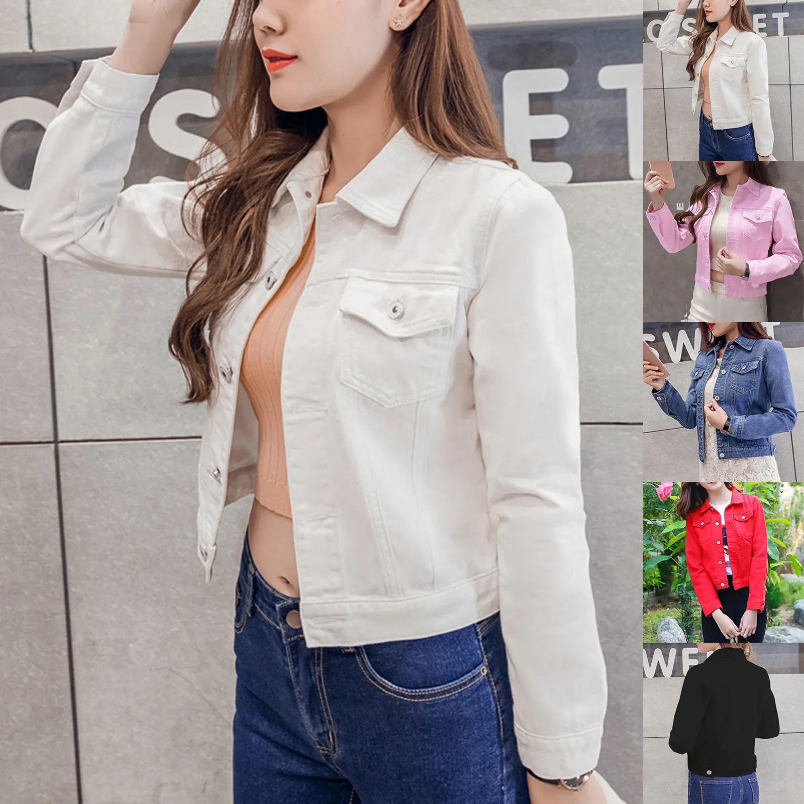 Женская джинсовая куртка, короткая однобортная куртка из денима на осень, 2021