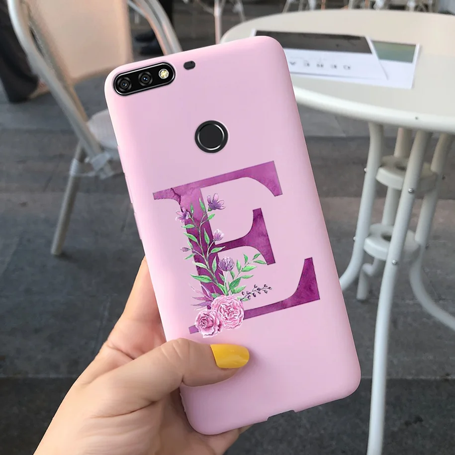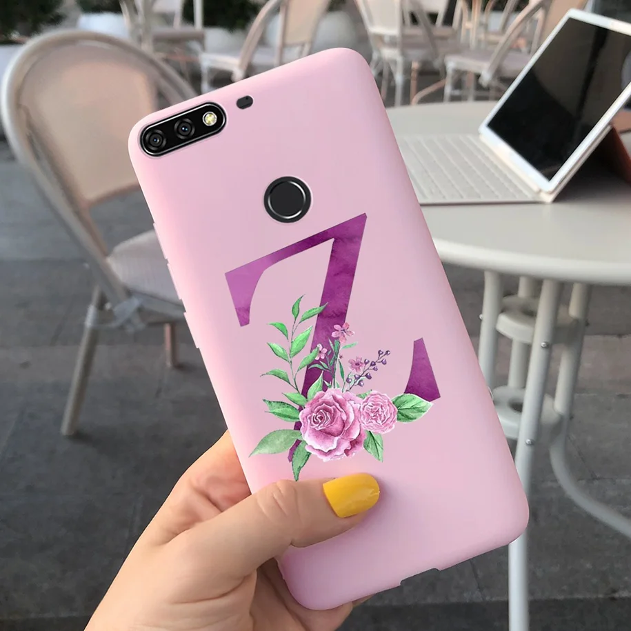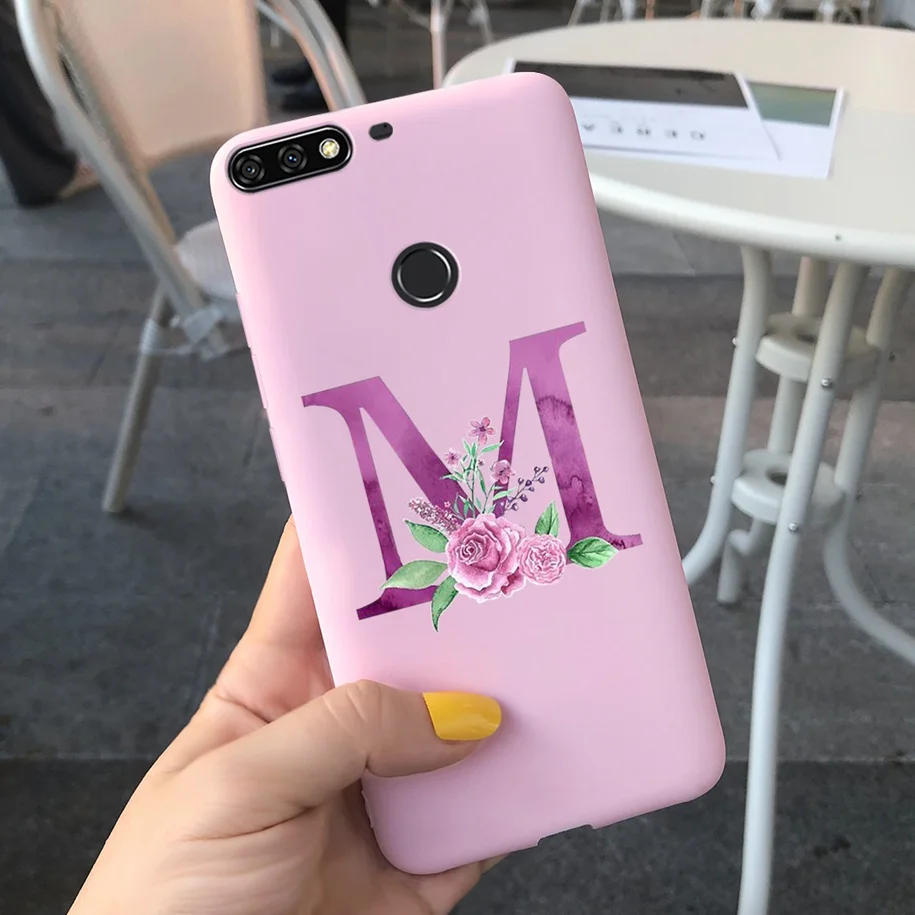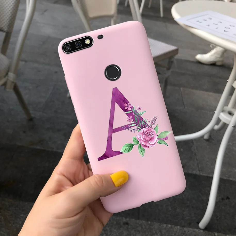 Case For Huawei Honor 7C Case Cute Floral Gold Initial Alphabet Letter Soft Silicon Phone Cover For Honor7C AUM-L29 AUM-L41 Bags