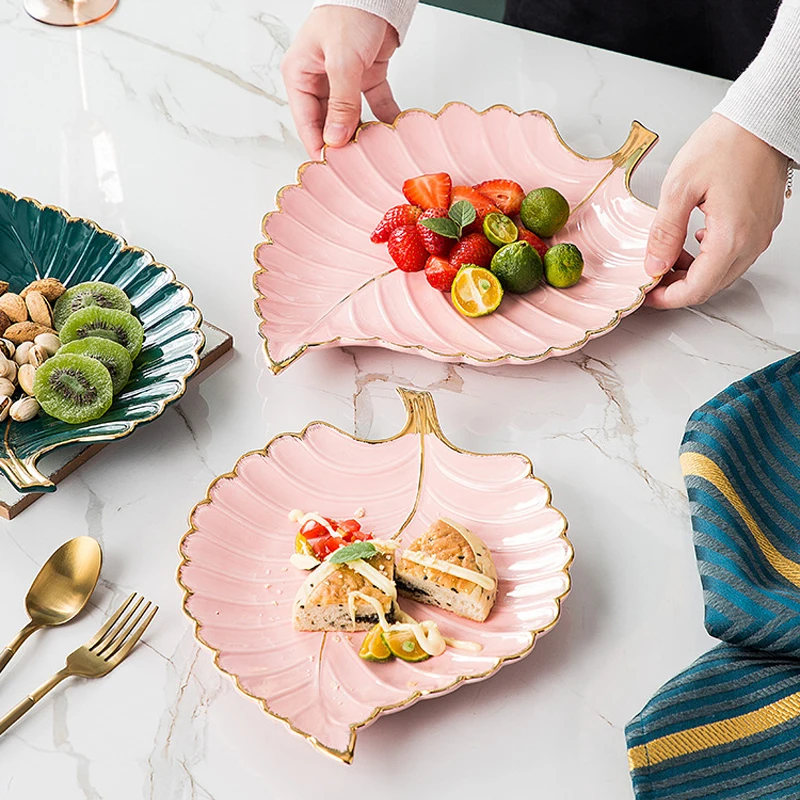 Керамическая обеденная тарелка в скандинавском стиле, креативные блюда в форме листа, домашняя еда, закуска, десерт, поднос для хранения, украшение для стола, кухонные принадлежности