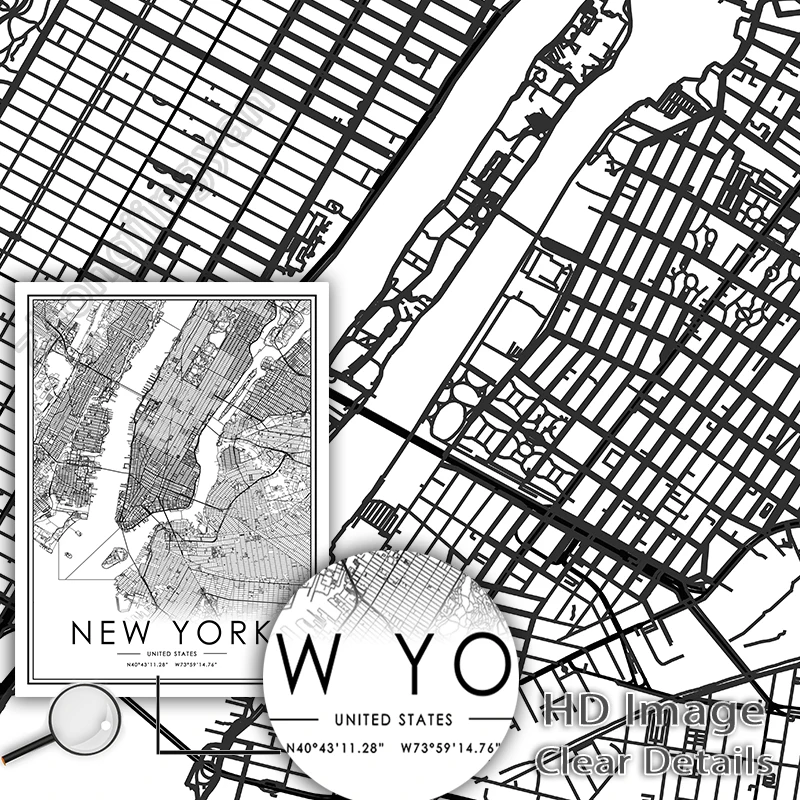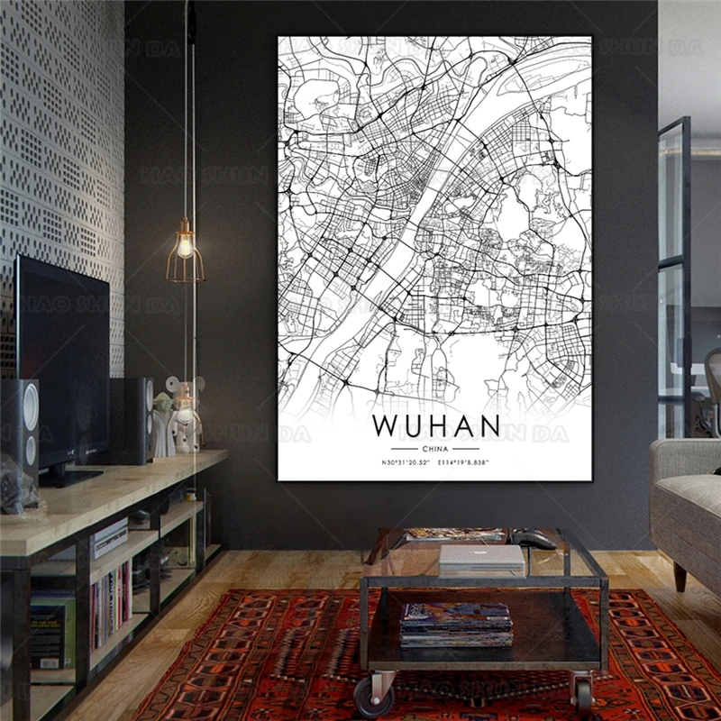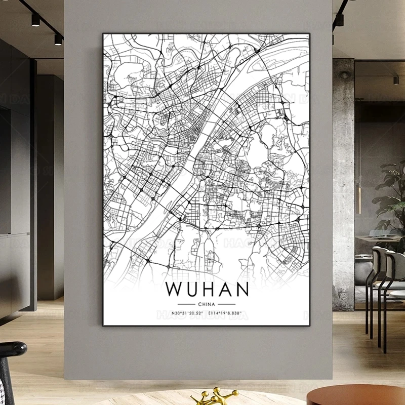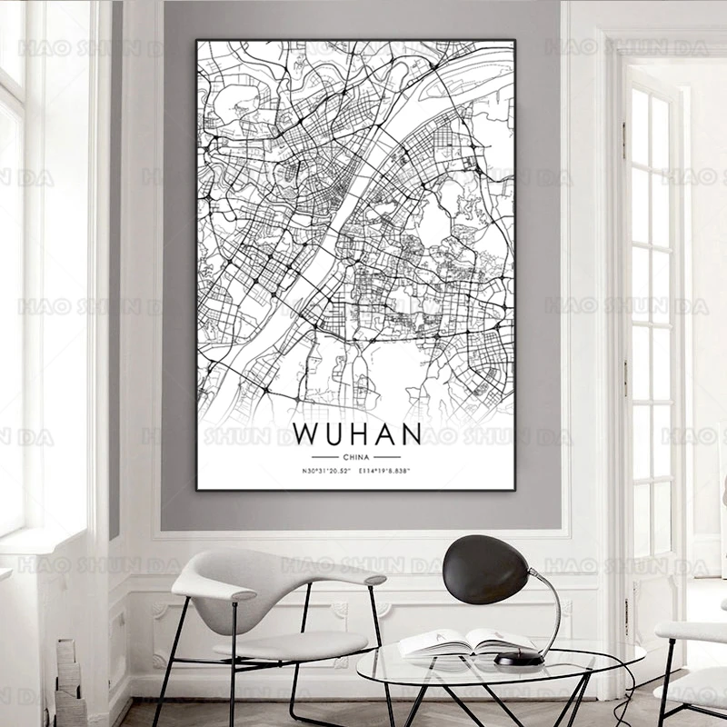 Черно-белая фотография, карта Ухань из Китая, плакат, HD печать, Настенная живопись на холсте для украшения дома, художественное оформление