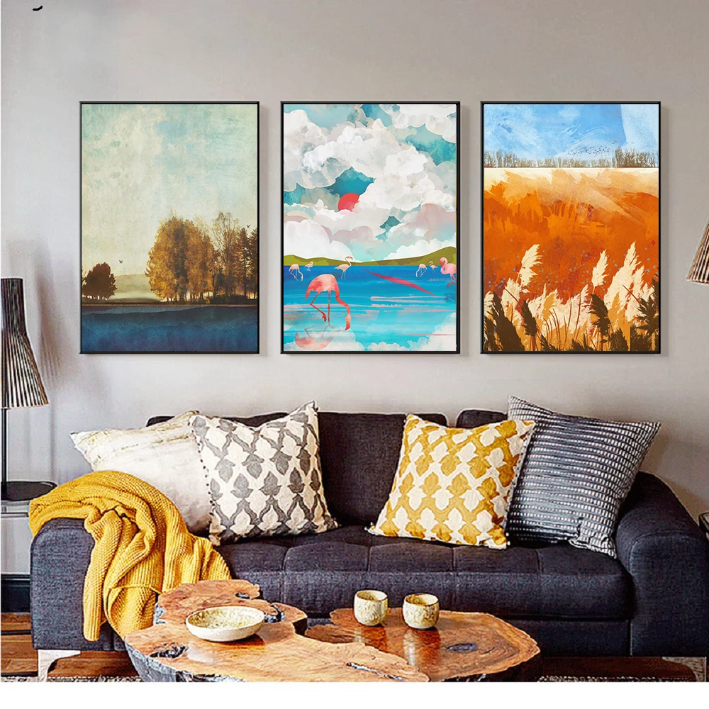 Картина маслом, пейзаж природы, растения, холст, живопись, дизайн интерьера, Скандинавская картина на стену, принты и постер для украшения спальни
