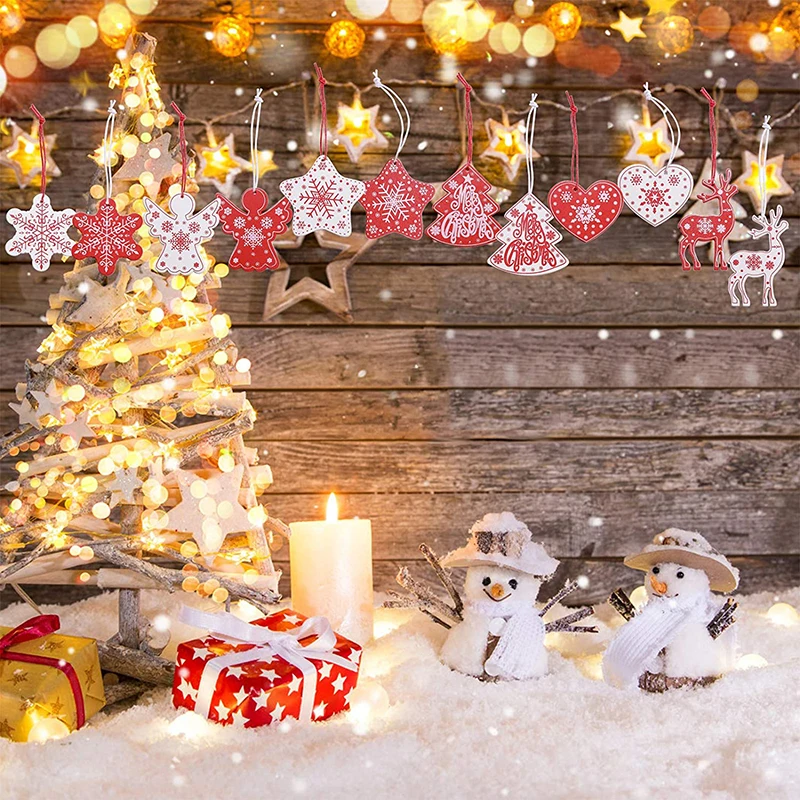 Украшения рождественской елки-Изготовлено из дерева и окрашено в красный и белый цвет, это очень подходит для украшения рождественской елки. Есть 36 различных дизайнов-звезды, колокольчики, олени, рождественские деревья и сердца.Красный и белый основные цвета рождественские украшения-Этот набор украшений для рождественской елки имеет 36 стилей деревянных рождественских украшений, которые помогут вам украсить вашу елку.Рождественское украшение в стиле кантри-Лакированное долговечное дерево с предварительно подготовленными вешалками-эти восхитительные красные и белые рождественские украшения готовы. Нет необходимости соединять эти предварительно Украшенные красные и белые рождественские украшения отдельно. Наслаждайтесь годами!Домашняя Рождественская декорация рукоделие хобби и подарочные бирки-Не только для внутреннего Рождественского украшения, но и для дополнительных специальных подарочных ярлыков и рождественских изделий ручной работы. Используйте свое воображение, чтобы создать особые моменты и прекрасные рождественские украшения с этим рождественским орнаментом.Случаи: украшение для дома, Рождественское украшение, украшение для рождественской елки, вечерние украшения diy, детские рождественские подарки,