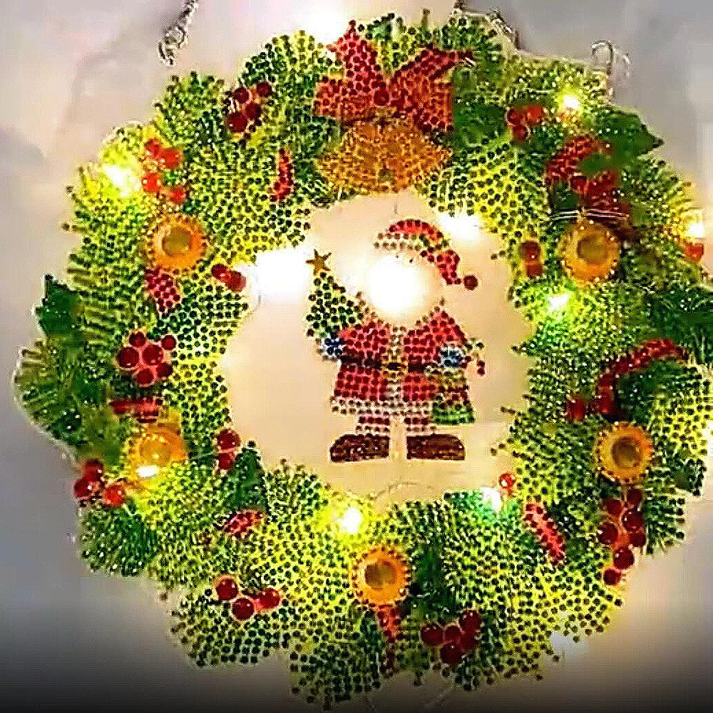 Алмазная живопись 5D, венок со светодиодсветильник кой, Рождество, ...