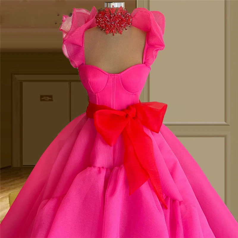 Женское вечернее платье без рукавов, розовое платье со шлейфом и поясом-лентой, платье для выпускного вечера, 2022