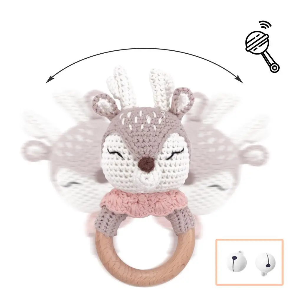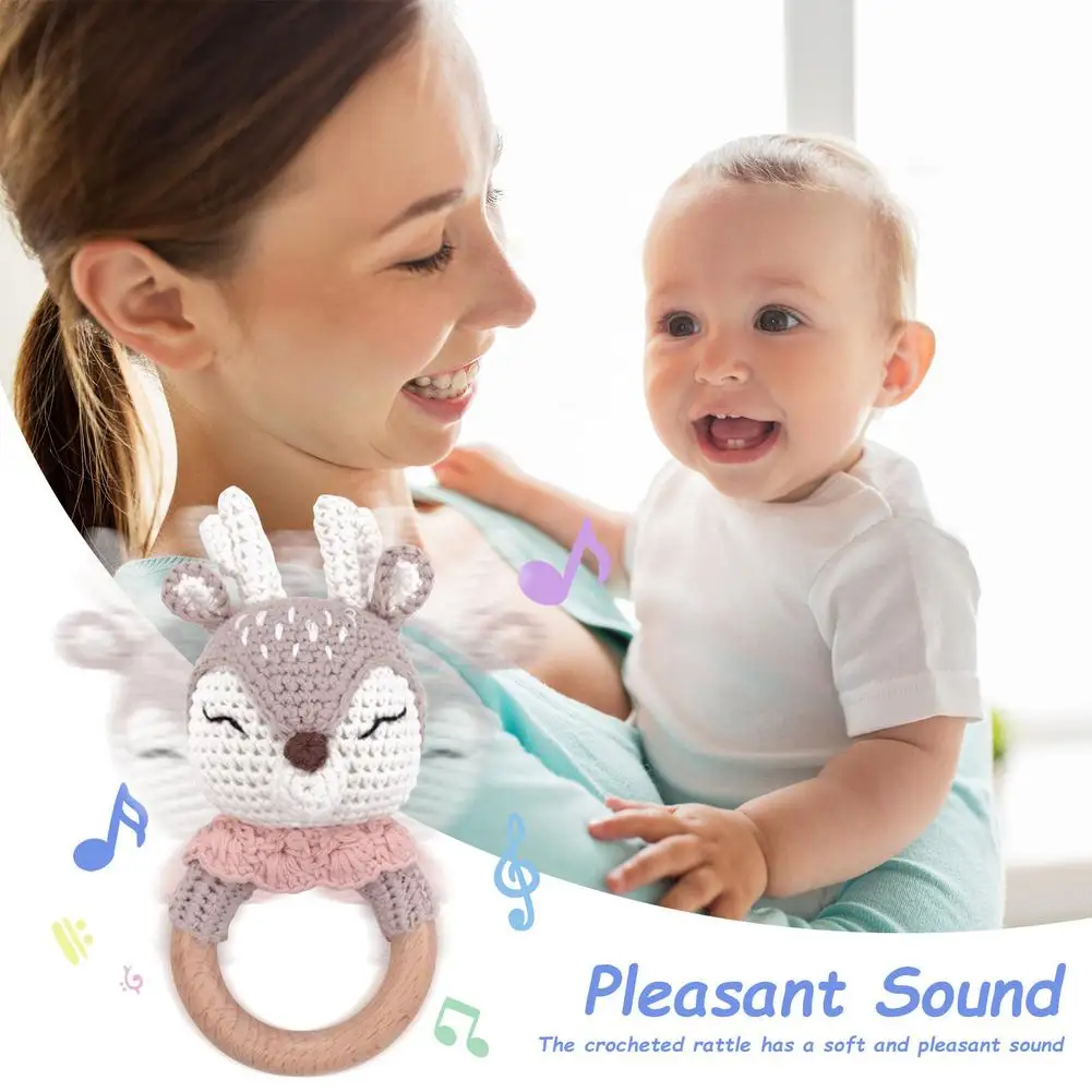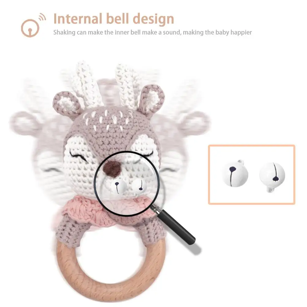 Детское деревянное вязаное крючком кольцо для прорезывания зубов