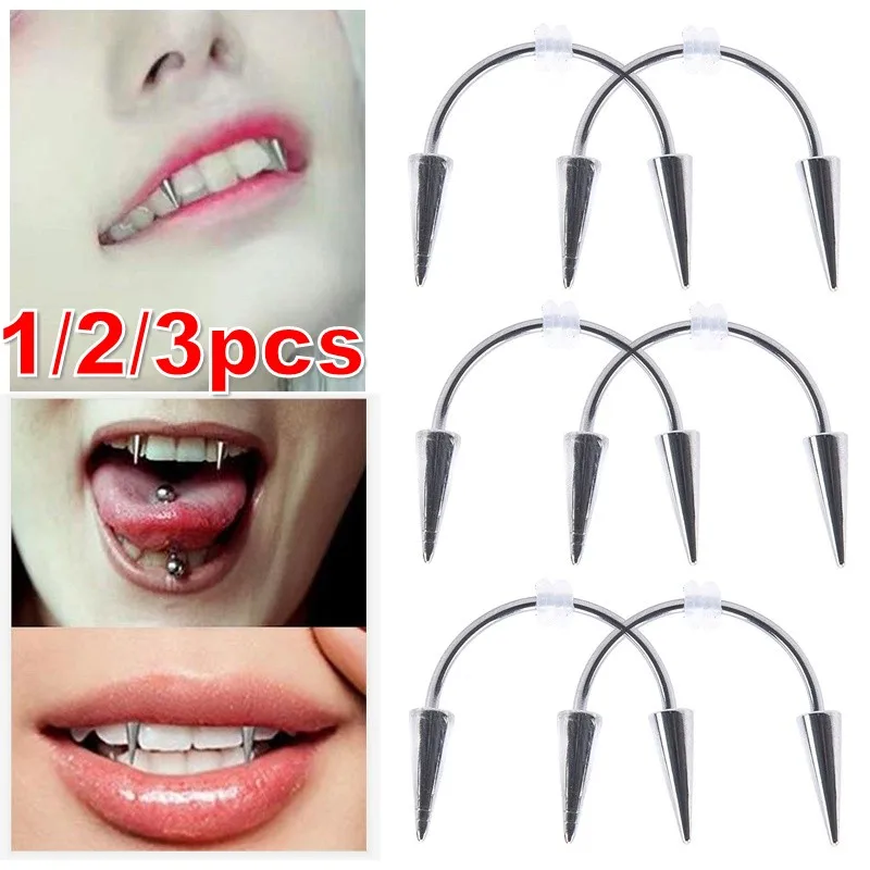 Украшение для зубов из медицинской нержавеющей стали C-образный стержень улыбка губ тигр зуб ноготь зомби зуб кружева ноготь вампир украшения для пирсинга тела