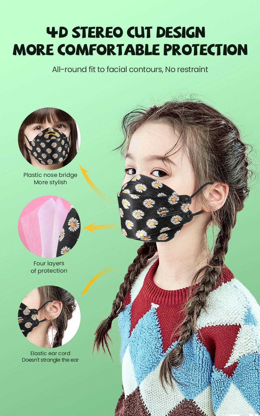 Детская Пылезащитная дышащая 4-слойная маска ffp2 KN95 для детей