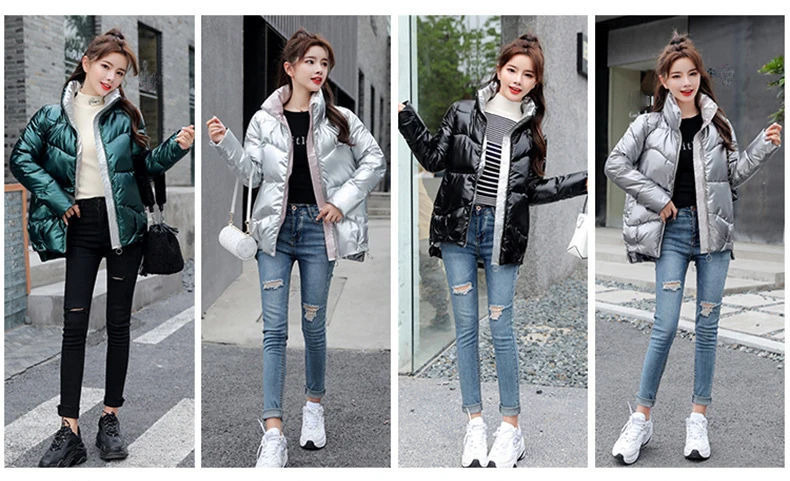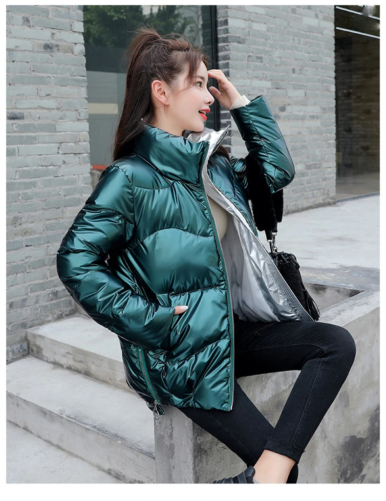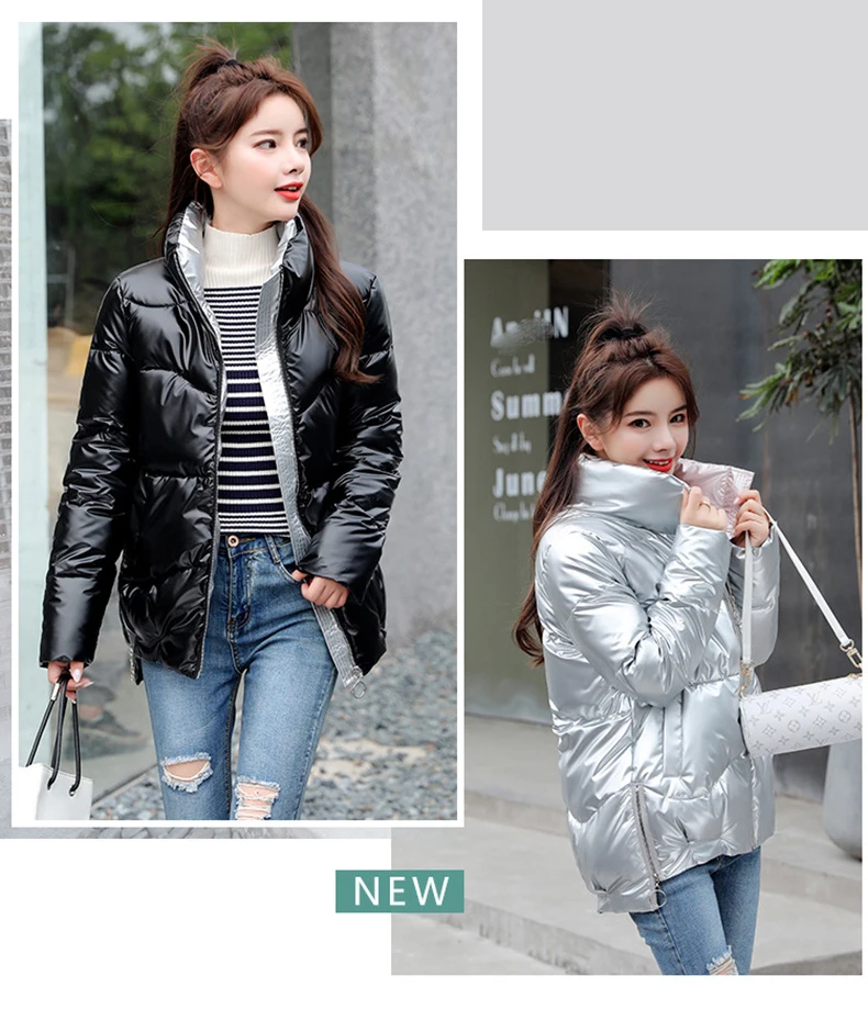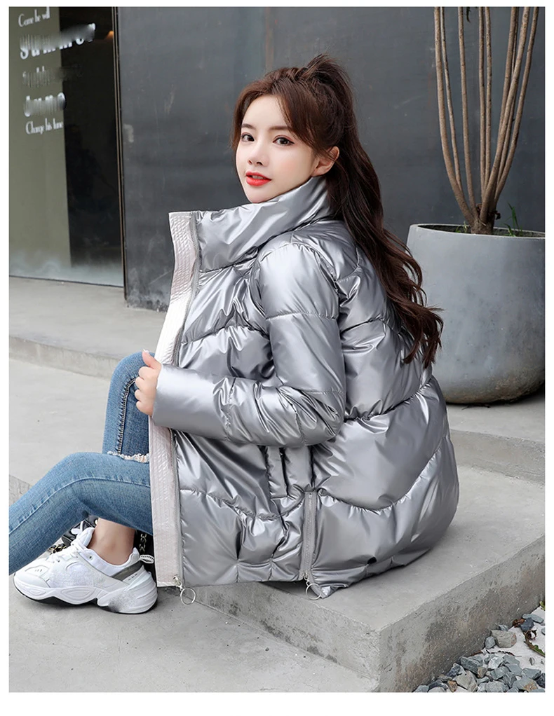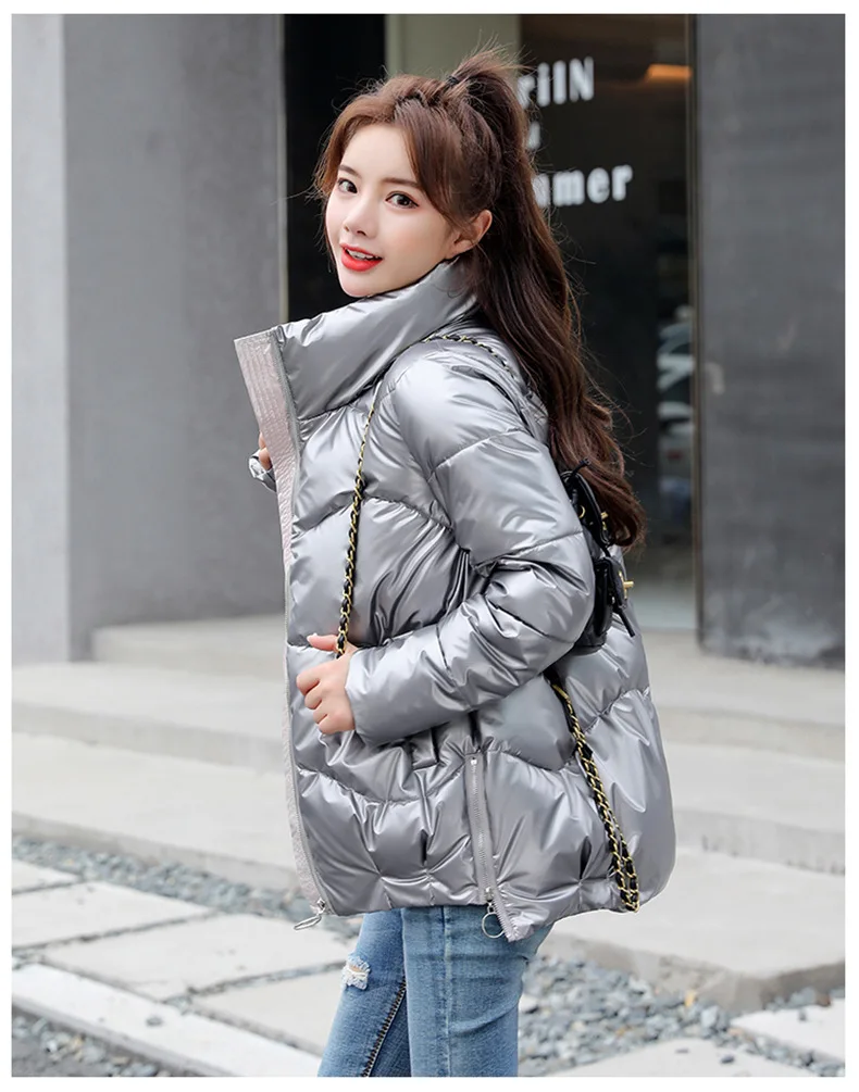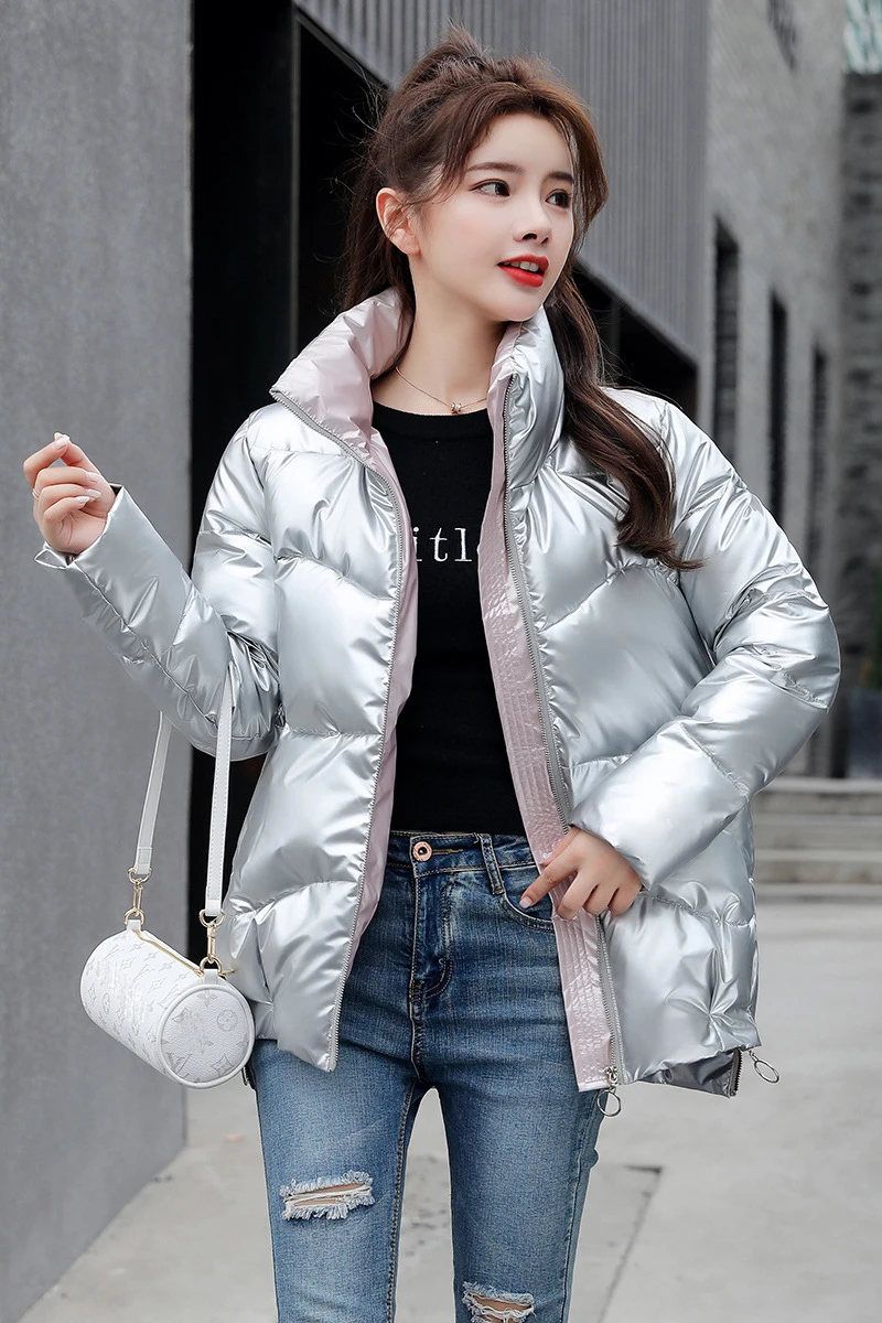 Женский пуховик, зимняя Блестящая СеребристаячернаяЗолотистаясиняя парка, 2022