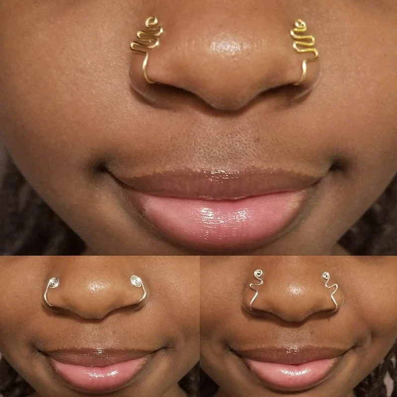 Поддельные кольца для носа, зажим для искусственного пирсинга, ювелирные изделия, искусственные кольца, зажим, инкрустированный не пирсинг, зажим на кольцо в нос