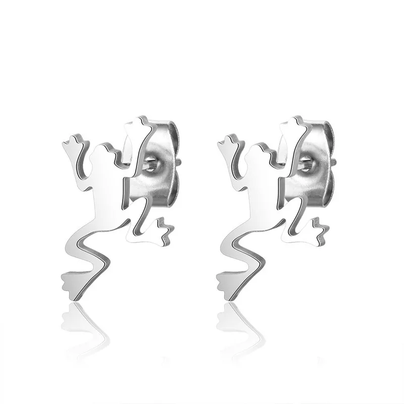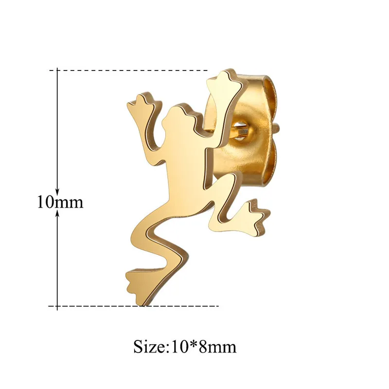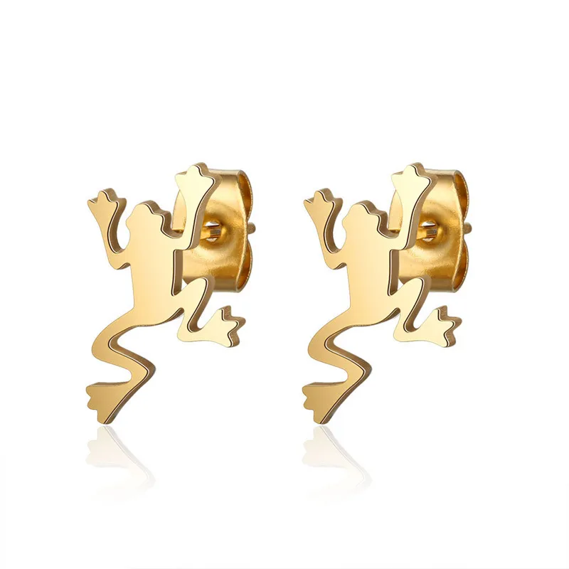 Серьги-гвоздики женские, мужские, из нержавеющей стали, в форме лягушки, золотого цвета, AAA