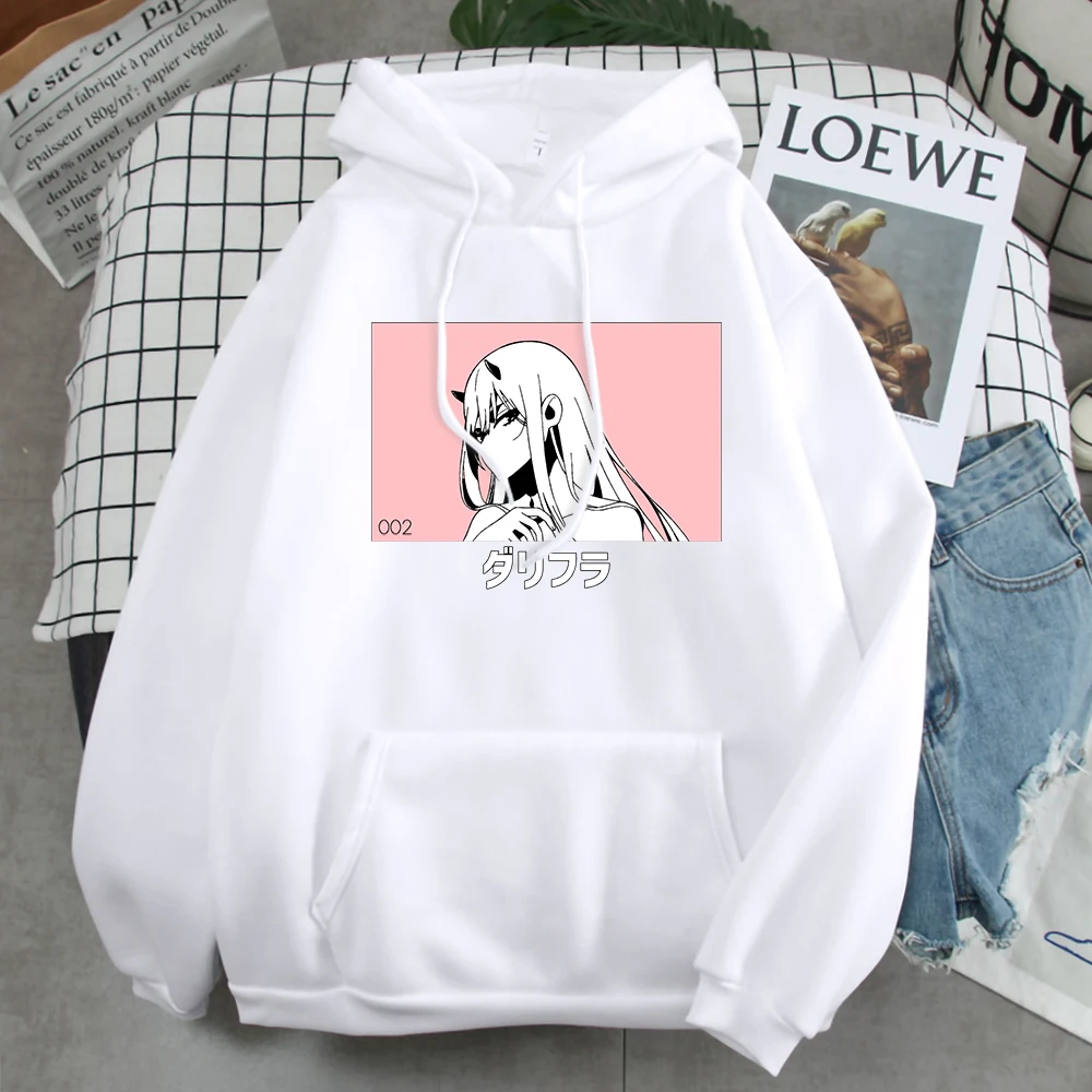 Пуловер с принтом аниме Zero Two, Мужская зимняя толстовка, Мужская Толстовка Оверсайз с капюшоном, костюм в стиле Харадзюку, толстовка