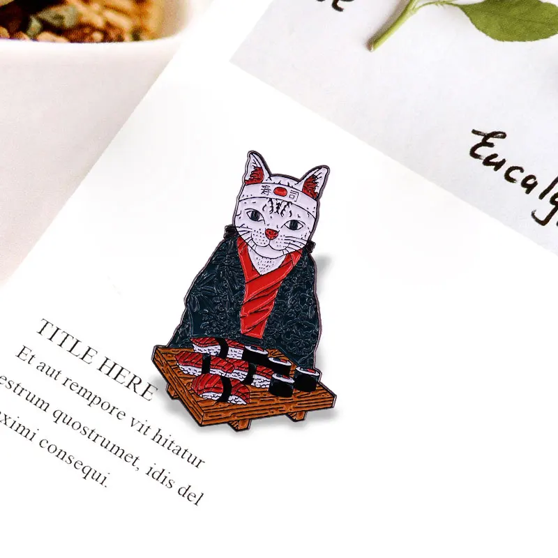 Эмалированная булавка для суши Neko Shari Sumeshi Food брошь в виде кошки, традиционное японское блюдо и кошка, забавные украшения