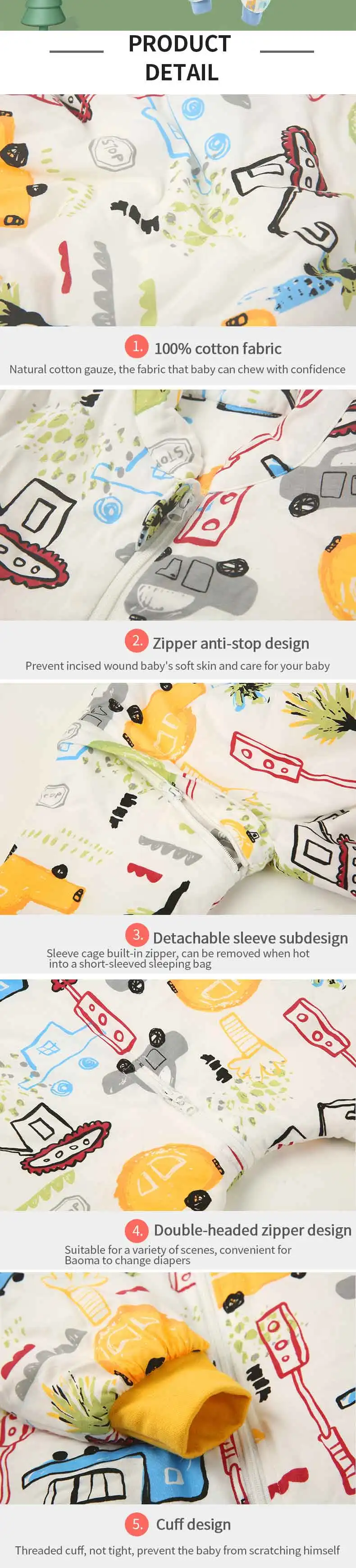 Спальный мешок Happy Flute для малышей, 100% хлопок, зимний, с длинным рукавом, с разрезом на ножках, со съемным рукавом, для сна, подходит для детей От 0 до 6 лет