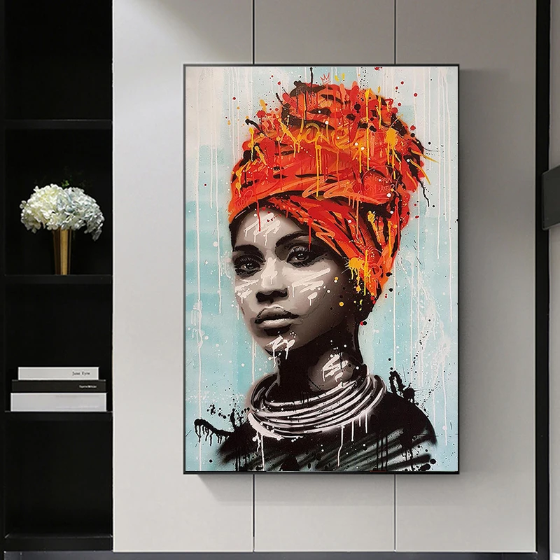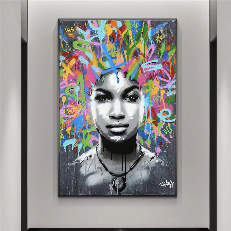 Граффити искусство африканские женщины холст живопись современная улица искусство стены портреты домашний декор картины