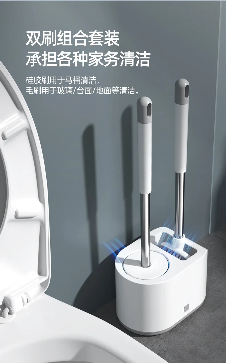 Щетка для унитаза, силиконовая, двойная насадка, жесткие щетинки