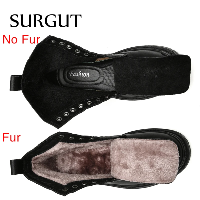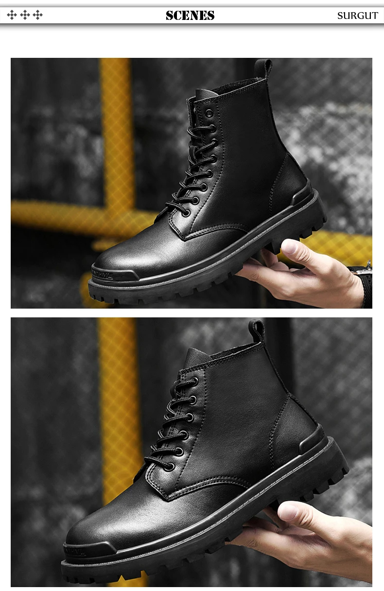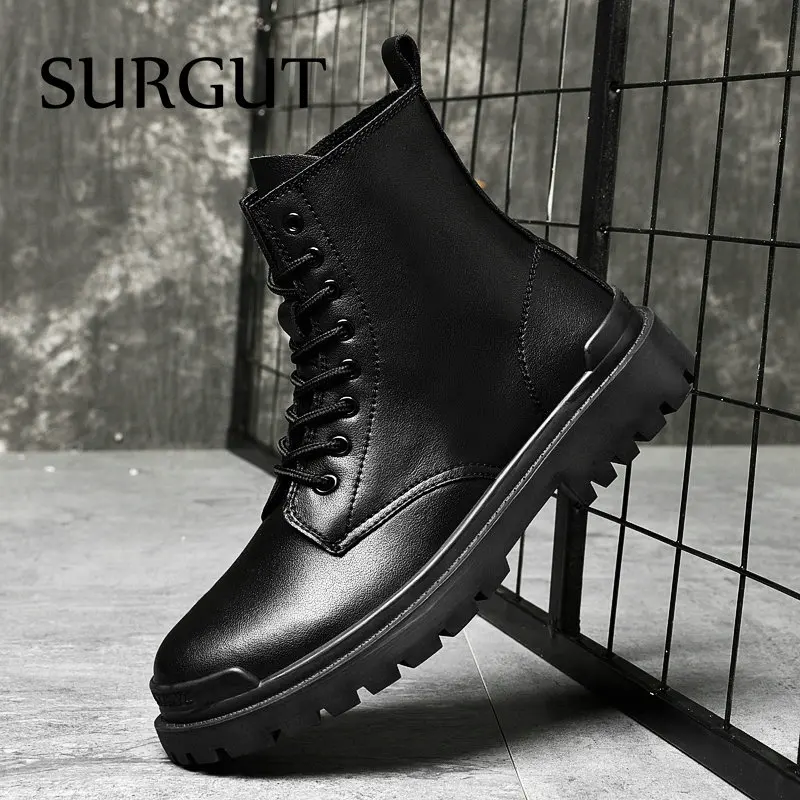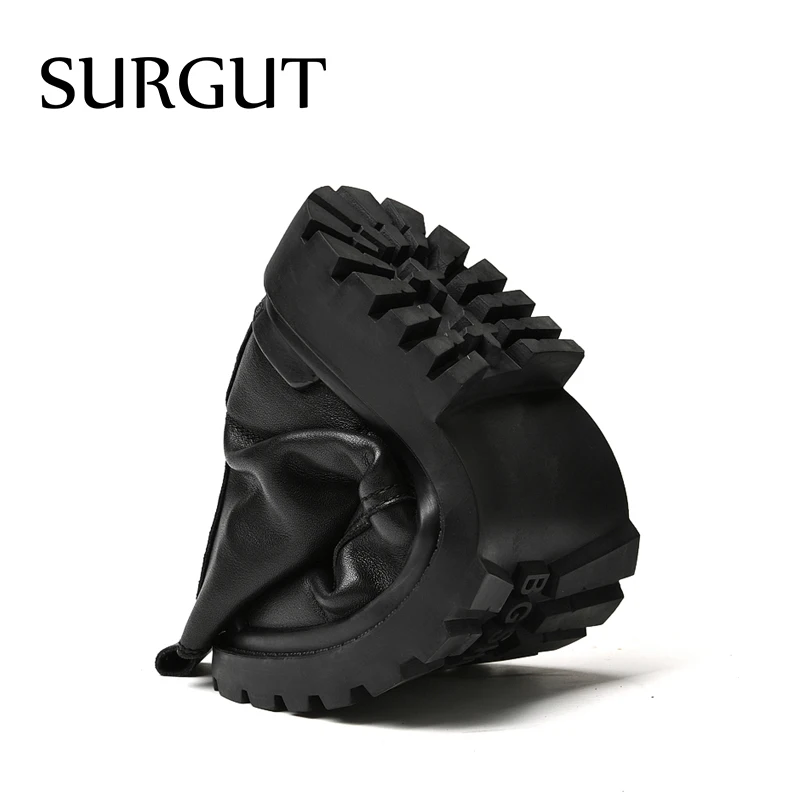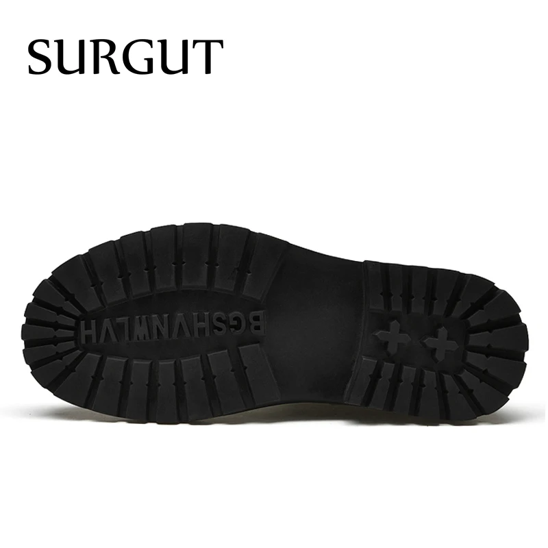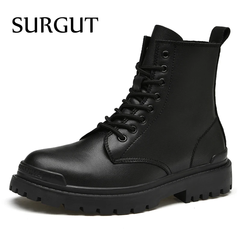 SURGUT/зимние черные ботинки на платформе из натуральной кожи; Мужские трендовые ботинки в британском стиле; Высокая повседневная мужская обувь; Ботильоны ручной работы