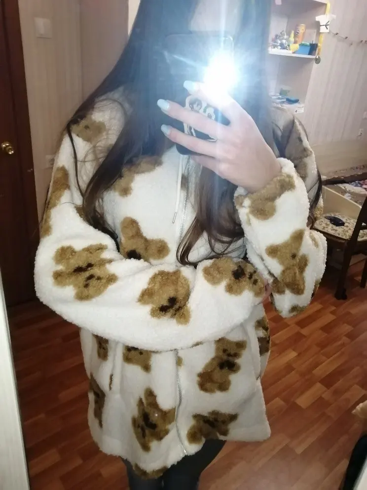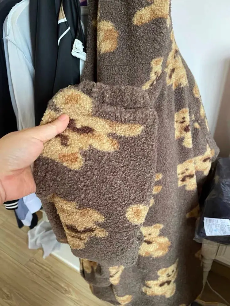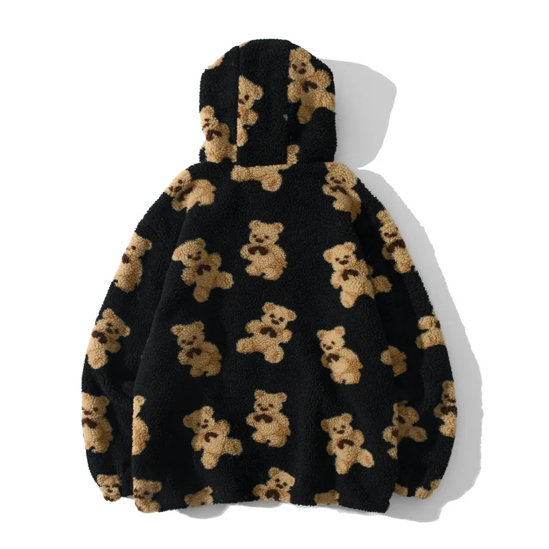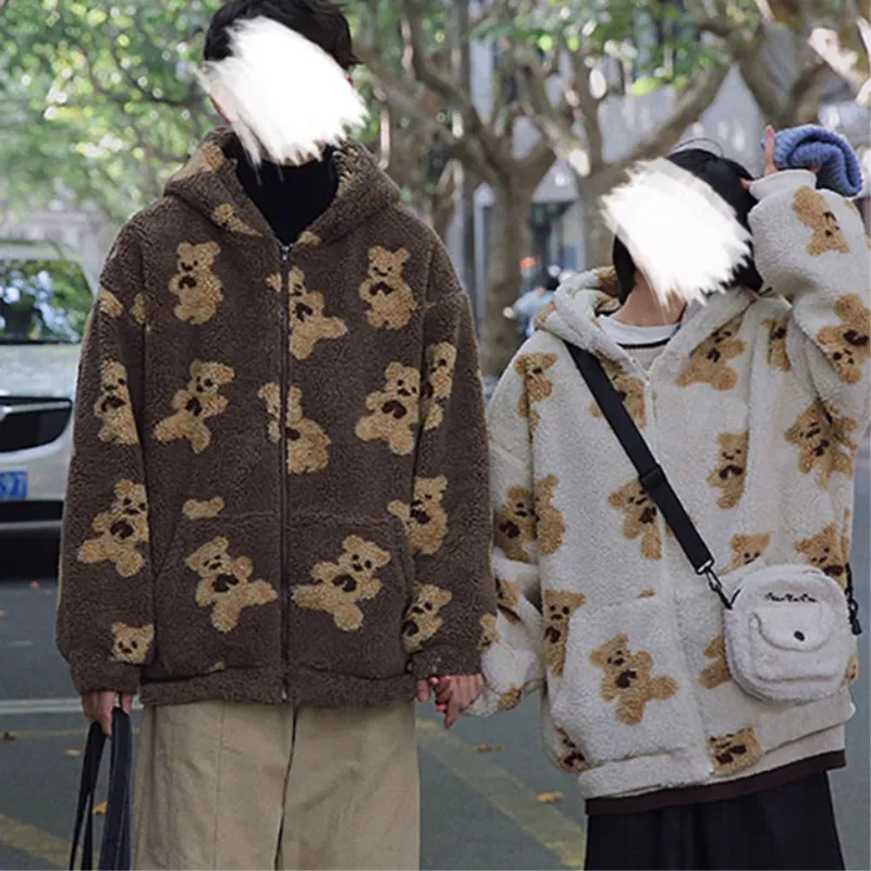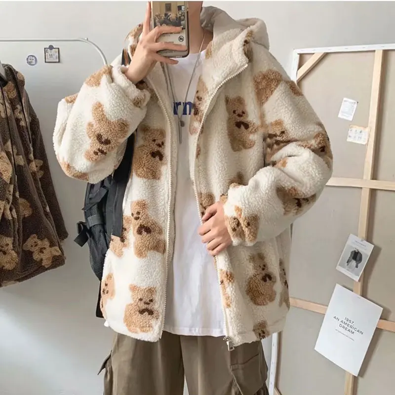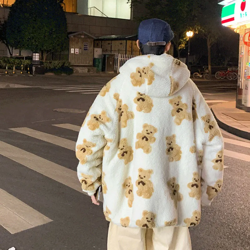 Новинка Осень-зима 2021, толстовки, свитшоты с принтом маленького медведя, Свободные повседневные мужские толстовки оверсайз из хлопка и флиса на молнии