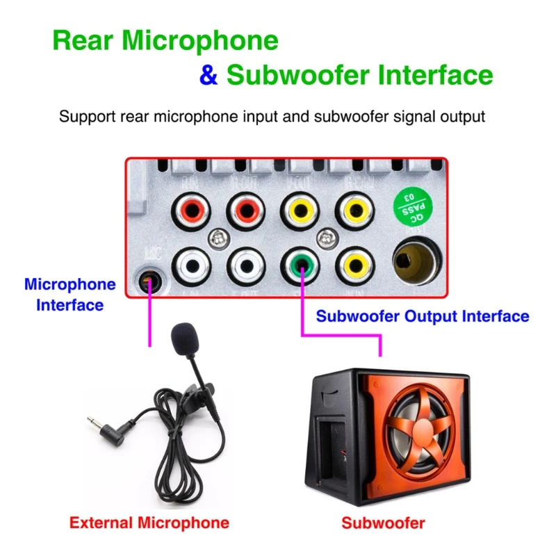 Функция: Односторонний видеовыход; Часы и отключение звука; Два аудиовыхода RCA; Вход для камеры заднего вида; Управление рулевым колесом.