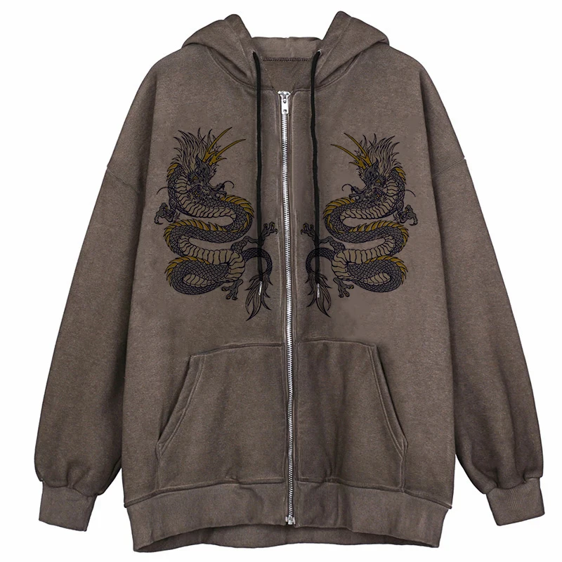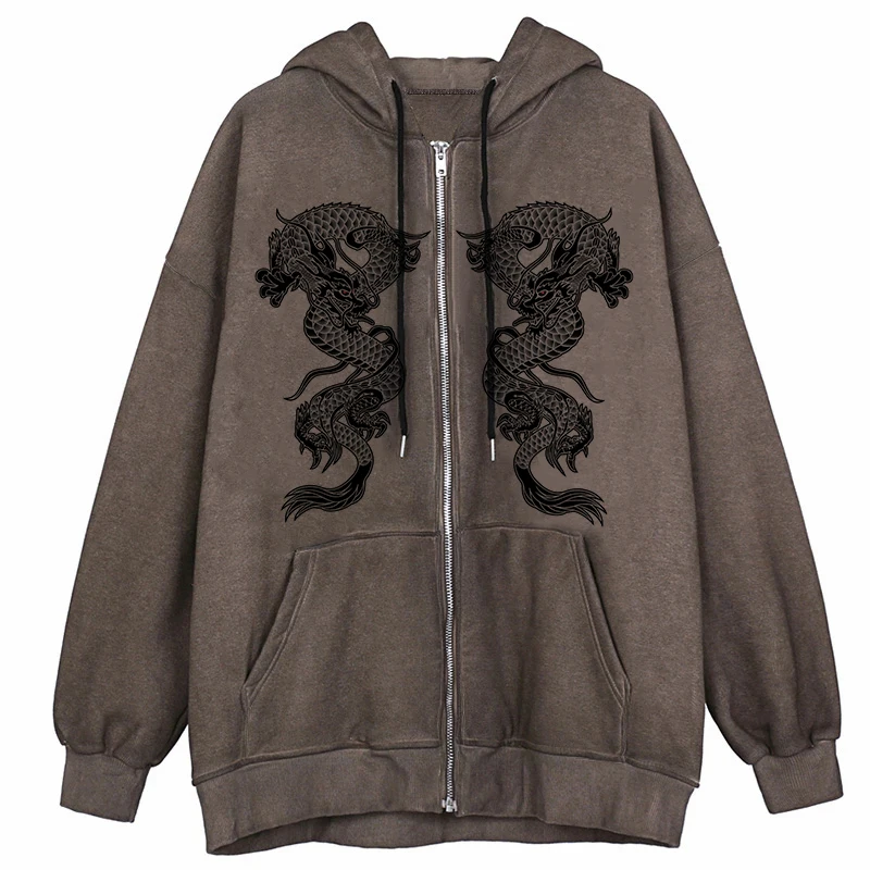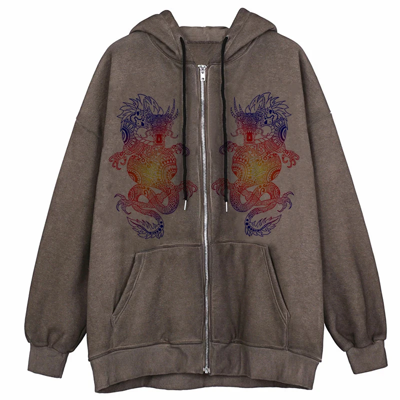 Мужская куртка на молнии, с принтом дракона, в стиле хип-хоп