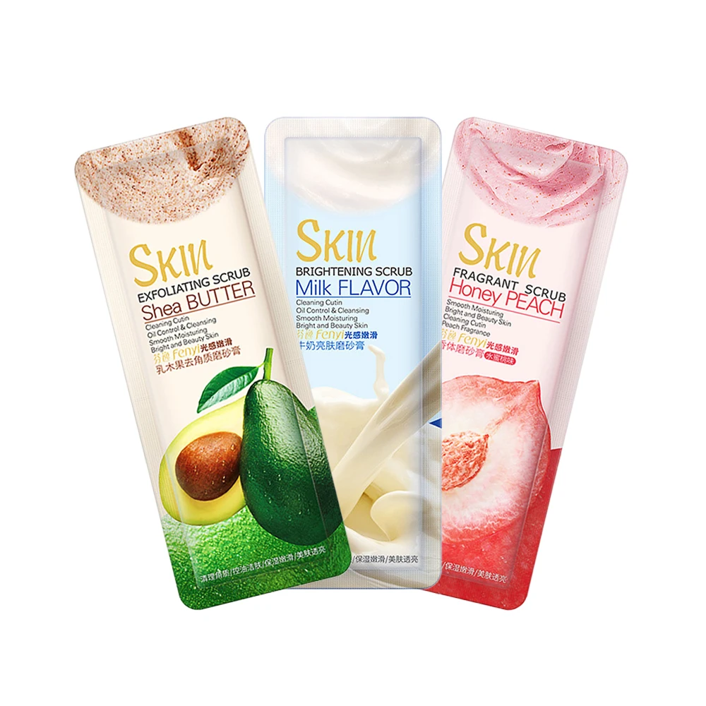 Название продукта:Очищающий скраб для тела с маслом шиОчищающий скраб для молочного телаМед персиковый очищающий скраб для телаОсновные ингредиенты: глицерин, никотинамид, аллантоин, арбутин, экстракт масла ши, экстракт молока, экстракт персика.Вес нетто: 3 г/шт.Подходит для: грубой, роговой кожи; Подходит для всех типов кожи.Эффективность: тонкие поры, увлажнение, мягкое Отшелушивание, мягкая кожа