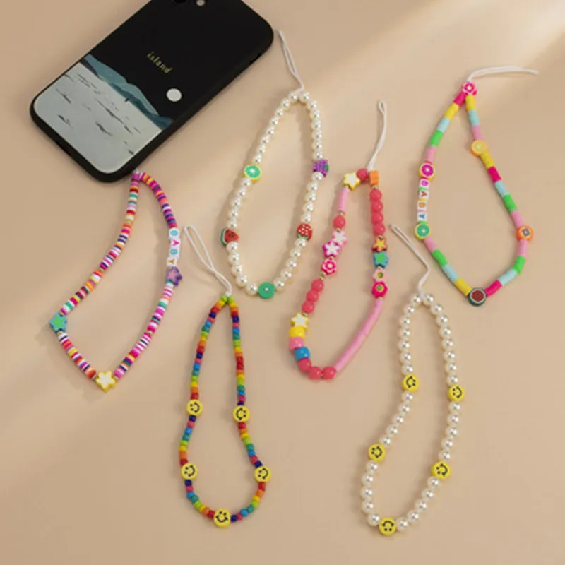 Блестящие бусины "Улыбка" мобильный телефон с цепью ремешки Бохо Ле...