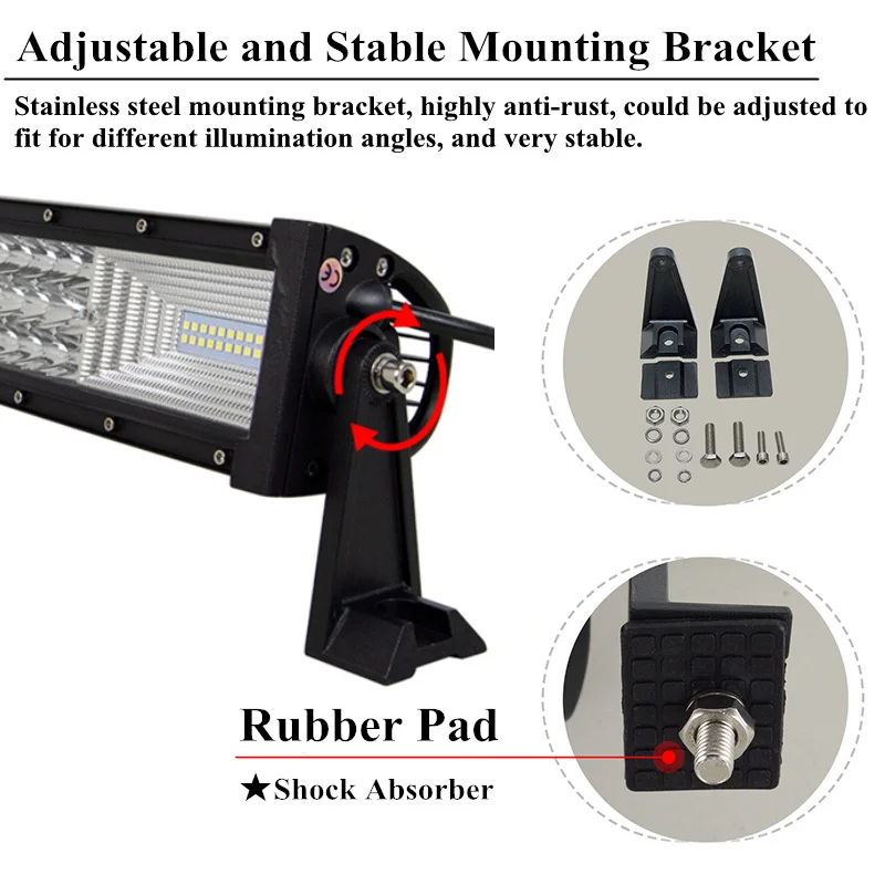 ★Эта трехрядная изогнутая Светодиодная панель 7d поставляется с крепежным кронштейном из нержавеющей стали, она очень стабильна для установки и может использоваться в любых погодных условиях.