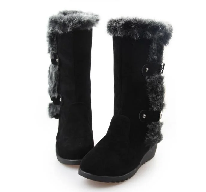 Зимняя женская обувь, женские сапоги до середины икры, классические зимние сапоги на толстой флисовой подкладке, женская обувь, Размеры 35-44
