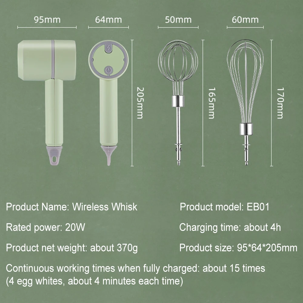 Пункт продажи 2: Уникальный дизайн: портативное устройство для взбивания яиц принимает беспроводную конструкцию, которая является небольшой и светильник, что позволяет избавиться от сколов проводов, разблокируя место использования, И выпечки в любое время и в любом месте