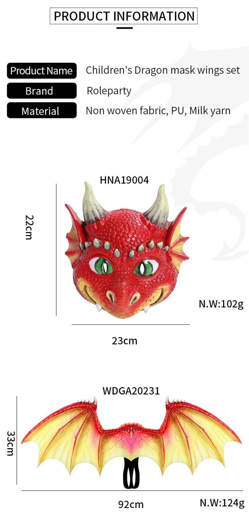 Детская маска дракона на Хэллоуин, крыло, 3D Крыло дракона, костюмы для косплея, реквизит для карнавала, аксессуары, рождественские подарки