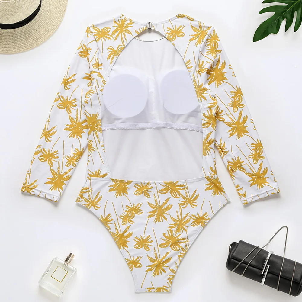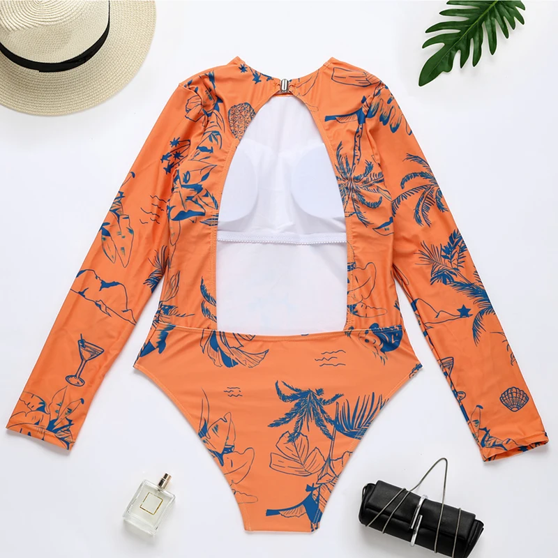 Женский слитный купальник на молнии, с длинным рукавом, с принтом, с высокой горловиной, костюм для дайвинга, для серфинга, купальный костюм для пляжа