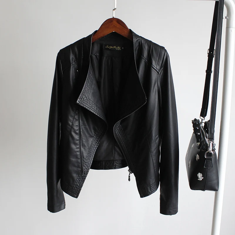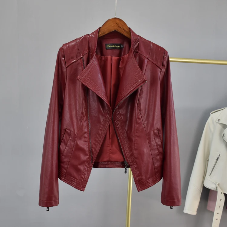 Женская кожаная куртка ZQLZ размера плюс, весенне-осенняя винтажная короткая верхняя одежда из искусственной кожи, мотоциклетная Байкерская облегающая черная красная кожаная куртка для женщин