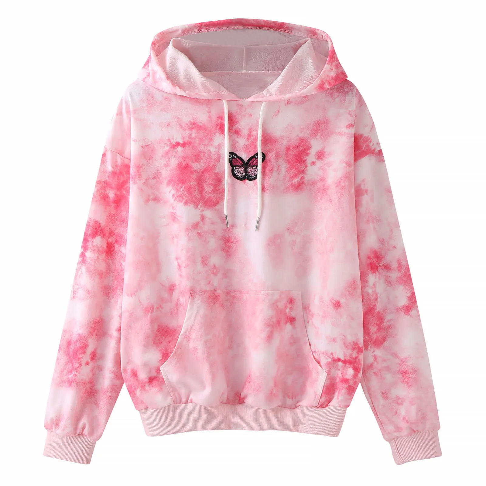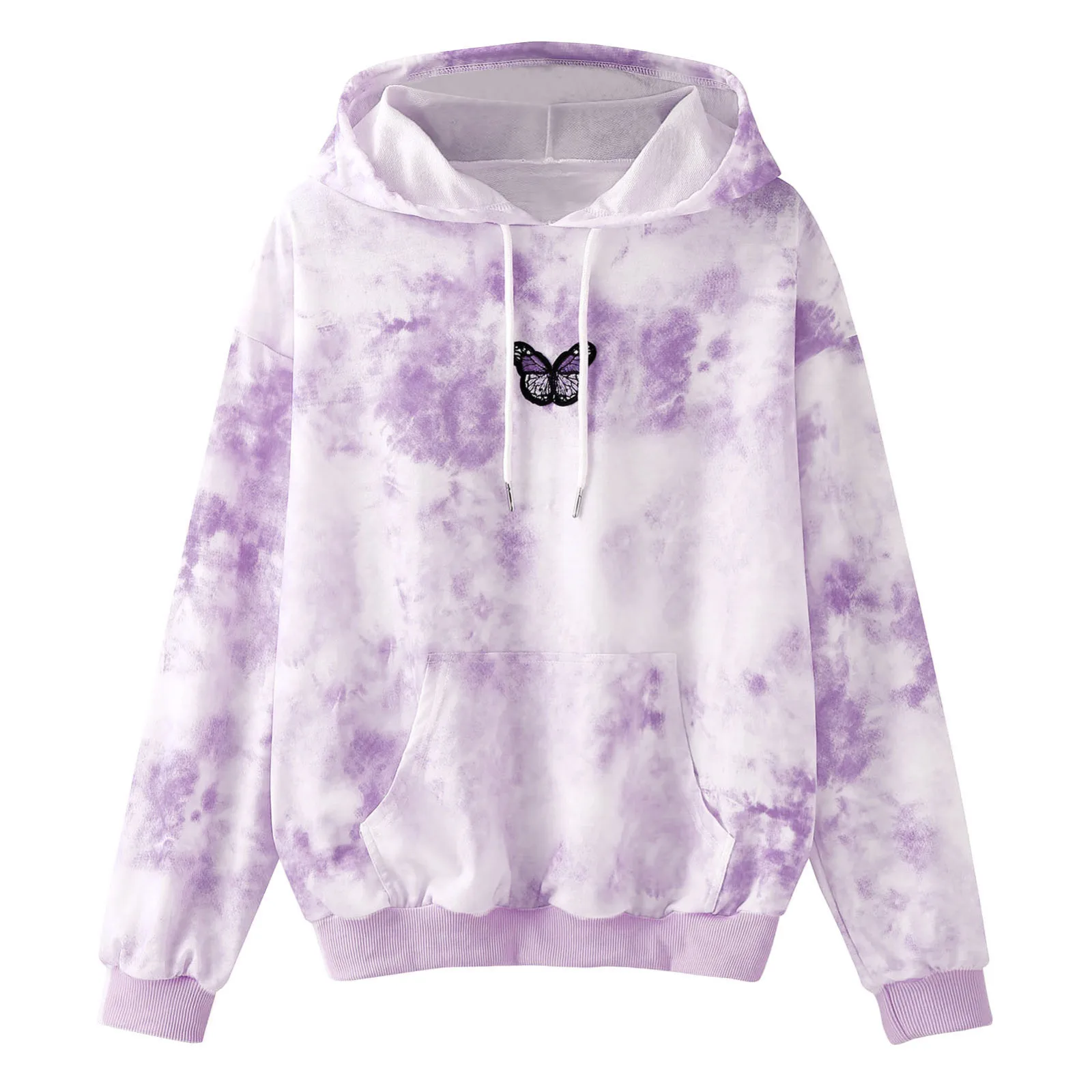 Толстовка женская с капюшоном и вышивкой бабочек, в стиле Харадзюку