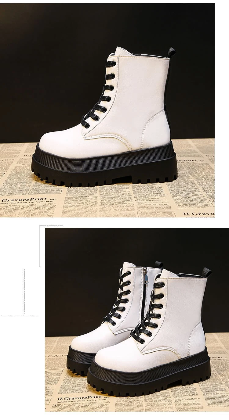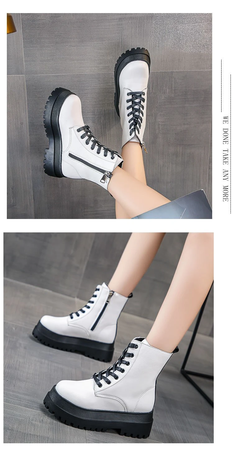 Ботинки женские из мягкой искусственной кожи, на платформе, белые, ...