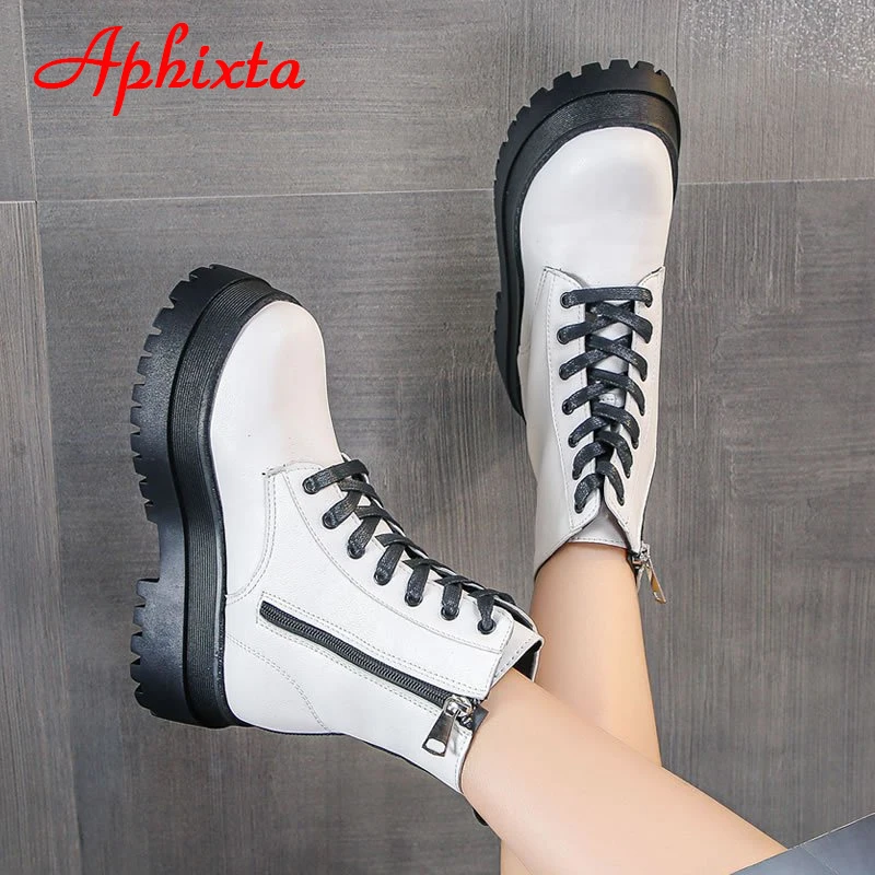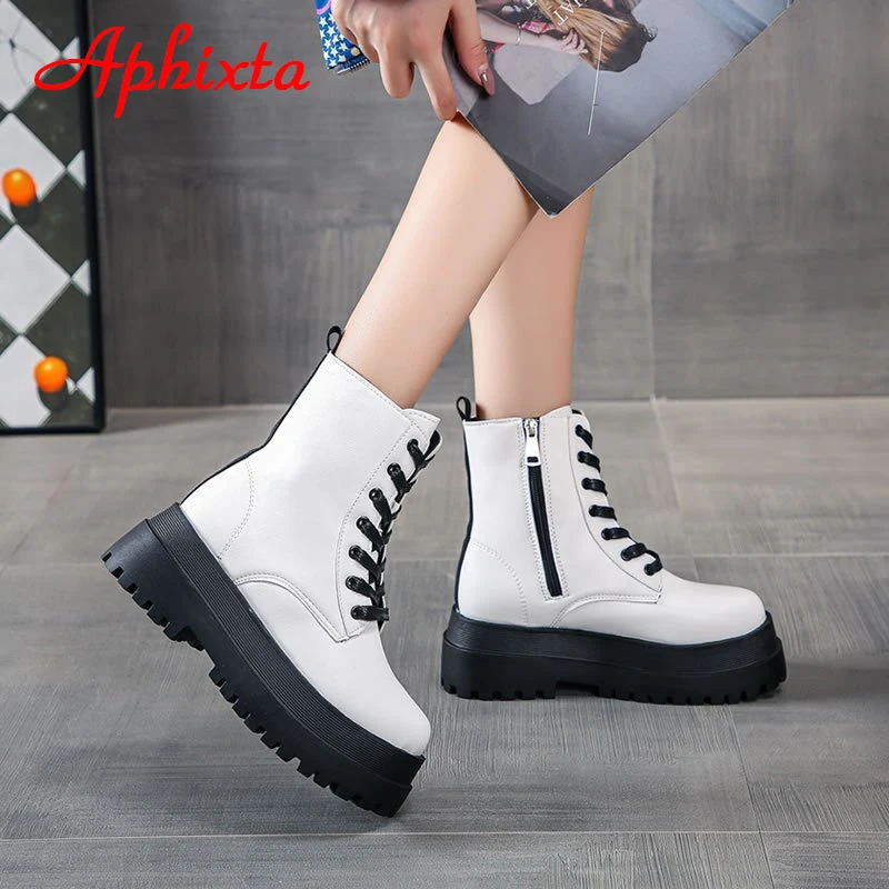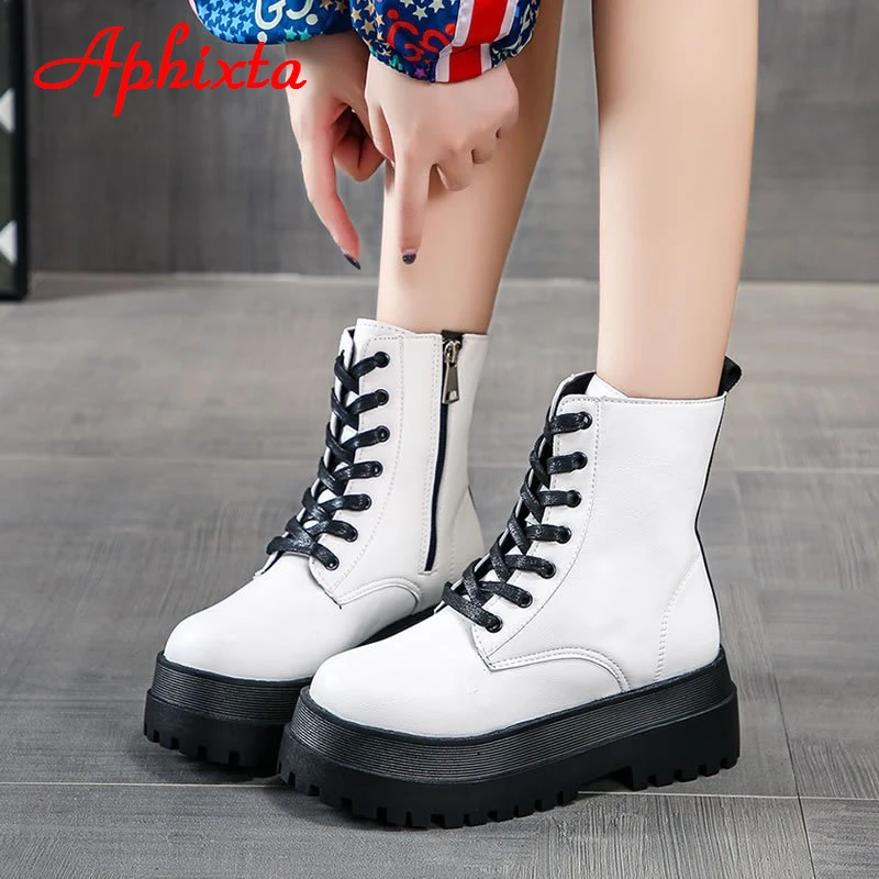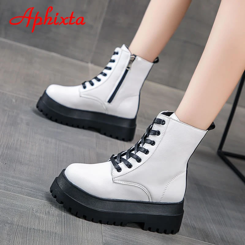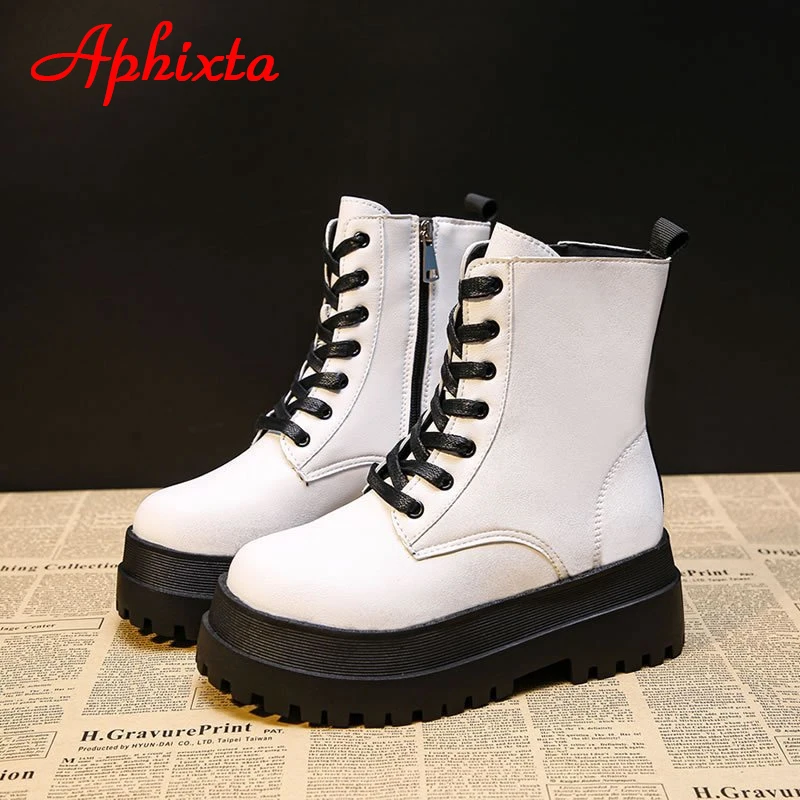 Новинка 2021, классические зимние белые теплые сапоги Aphixta на платформе, Женская водонепроницаемая обувь на массивной подошве, женская обувь на застежке-молнии сзади