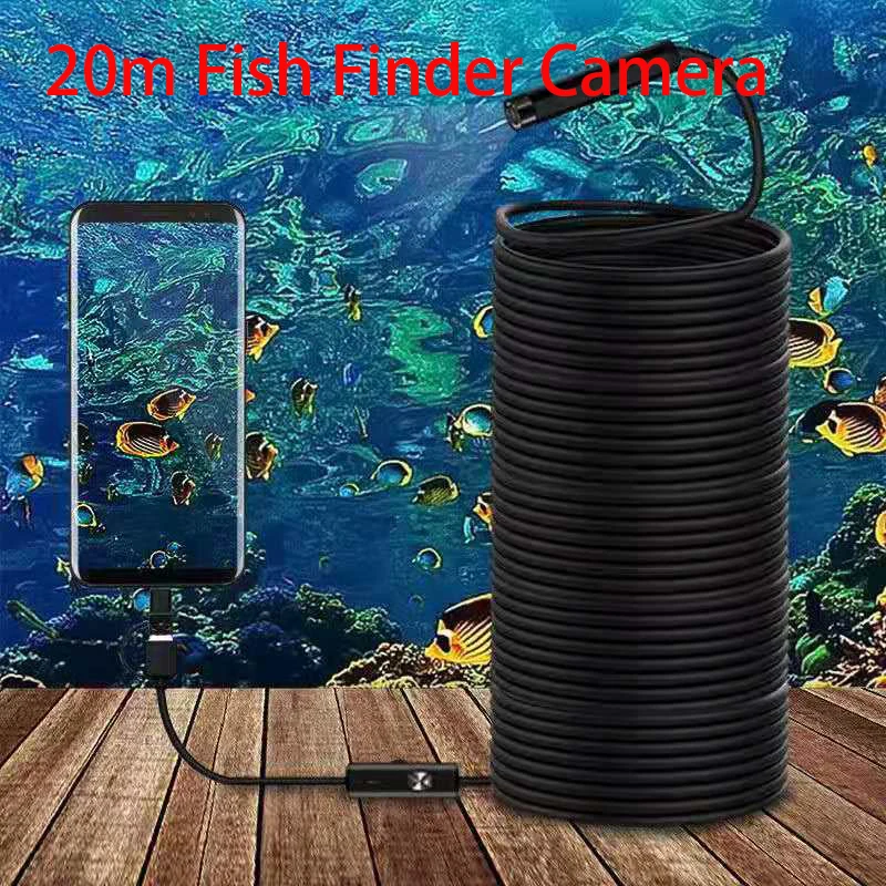 20 м HD эхолот 8 мм USB-эндоскоп Зимняя подводная ледяная визуальная рыбалка Охотничья камера 6 светодиодов для смартфона Android Type c