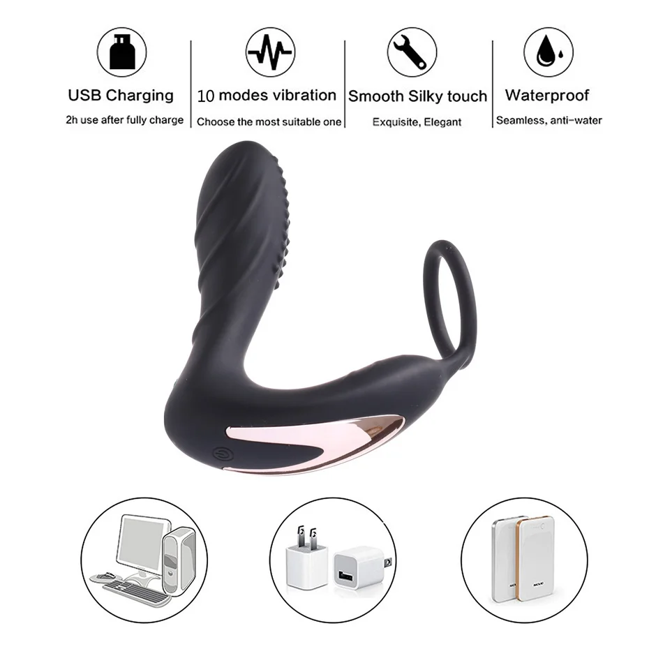 Анальная пробка с беспроводным дистанционным управлением и кольцом, силиконовый массажер простаты для мужчин, Анальный вибратор, 10 скоростей, секс-игрушки для взрослых для мужчин