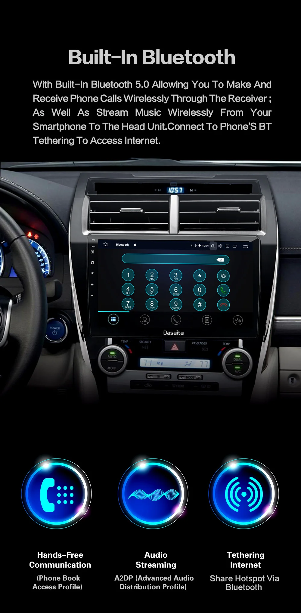 Dasaita Автомобильный HD экран 10,2 дюйма, Android, автомобильное радио для Toyota Camry GPS 2012 2013 2014 США и Среднего Востока, версия BT5.0 DSP Carplay