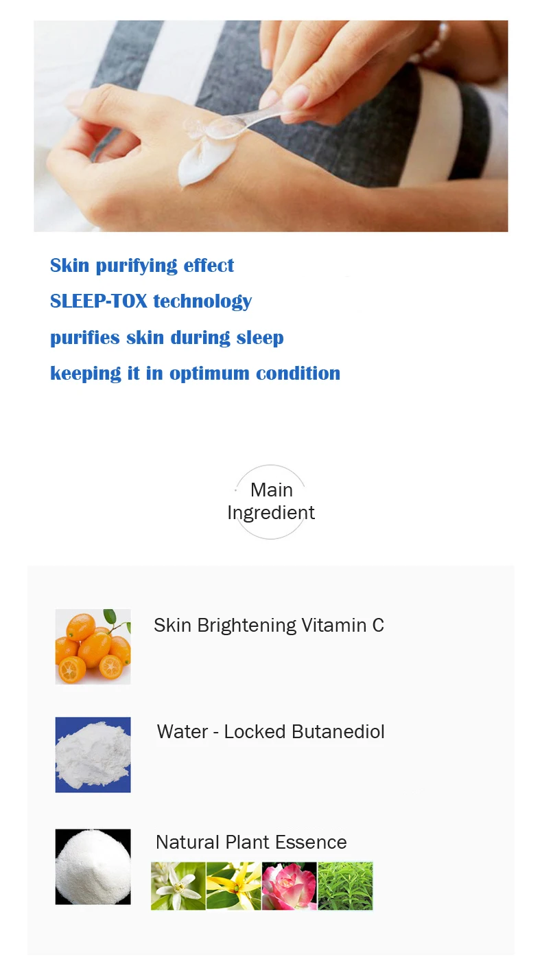 1. Skin purifying effect: SLEEP-TOX technology purifies skin during sleep, keeping it in optimum condition