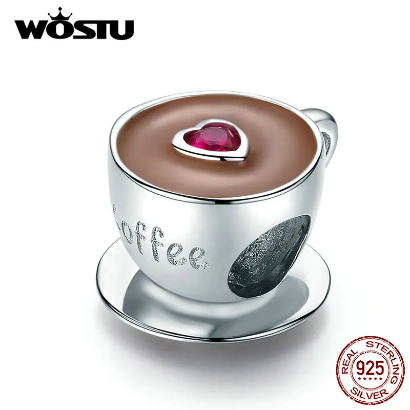 WOSTU 925 пробы серебро Горячая Распродажа кофейные Бусы Подвески