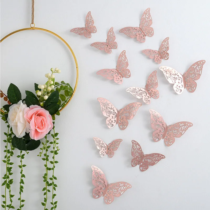 12 шт., золотые полые наклейки на стену в виде бабочек