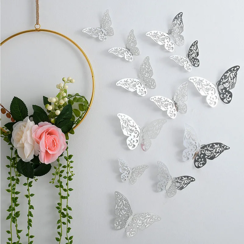 12 шт.лот Креативные 3D полые золотые серебряные бабочки настенные ...