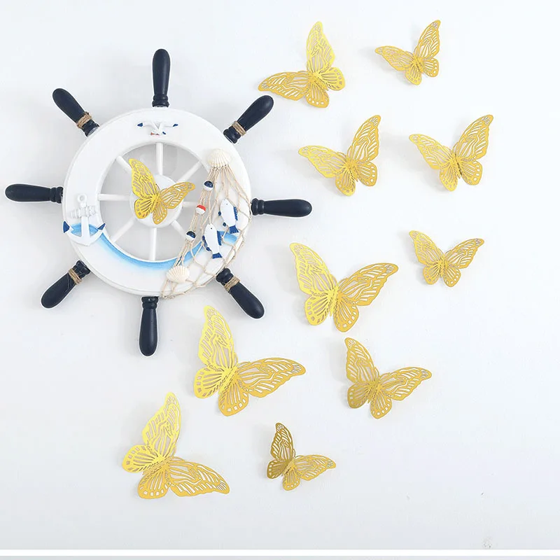 12 шт 4D золотые полые бабочки наклейки на стену DIY Свадебные украшения для торта для вечеринки детские комнаты украшения дома наклейки на стену на холодильник