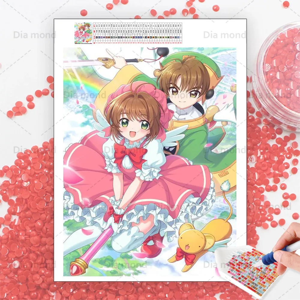 Аниме сделай сам, алмазная живопись, картонная вышивка, Сакура для девочек, алмазная вышивка 5D, мозаика сделай сам, мультяшный Набор для вышивки крестиком, ремесло, Настенная Наклейка