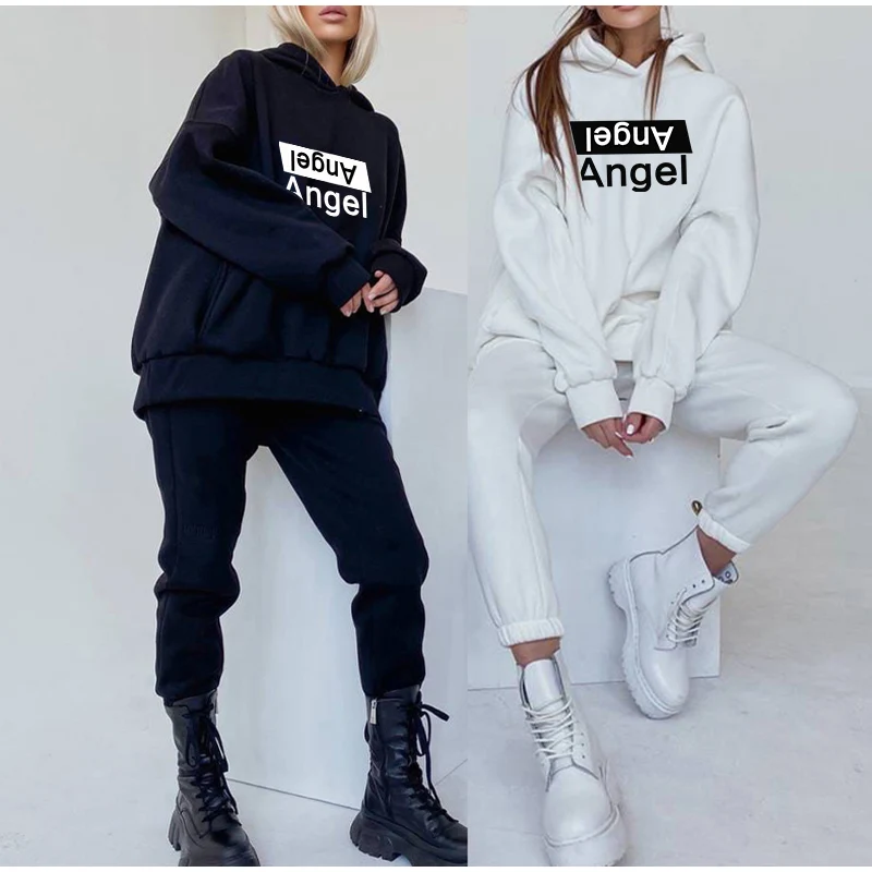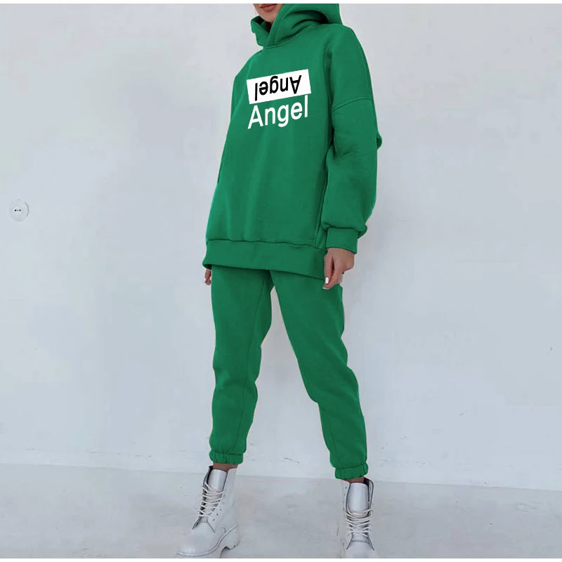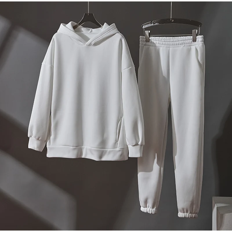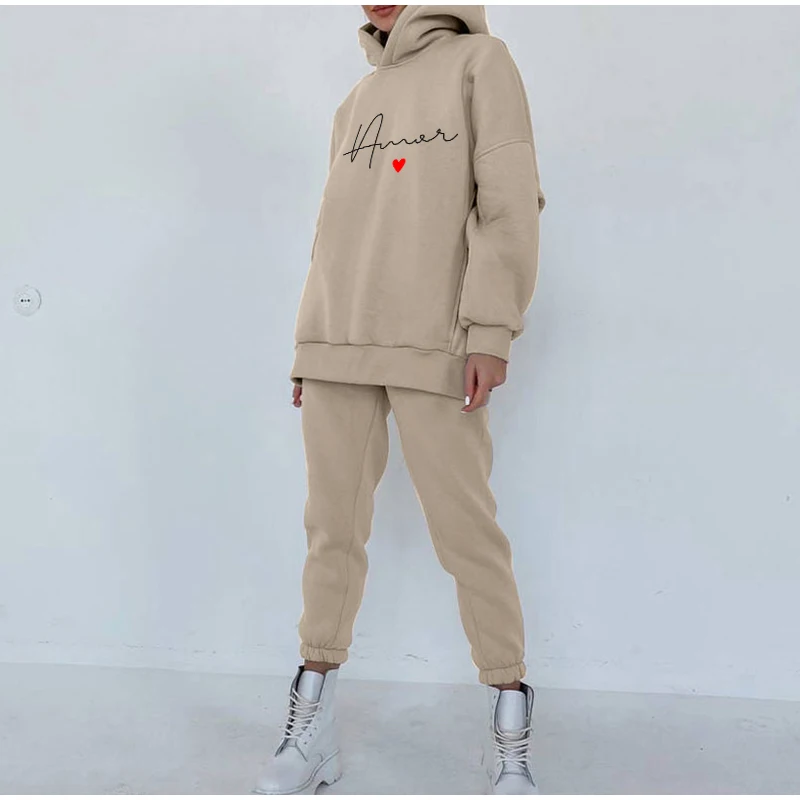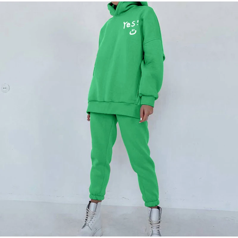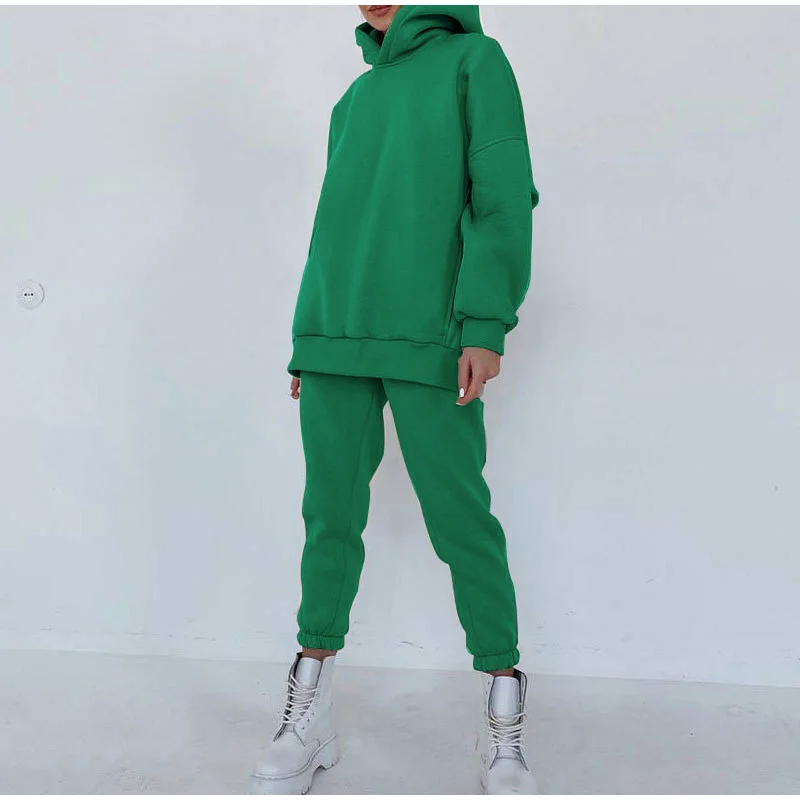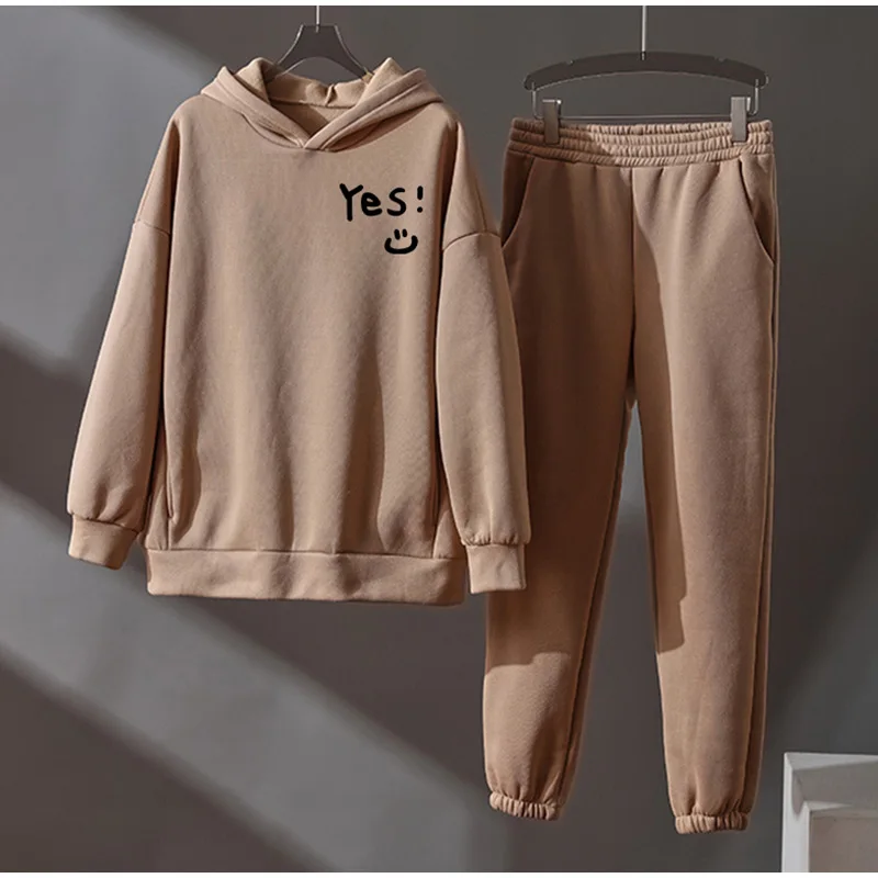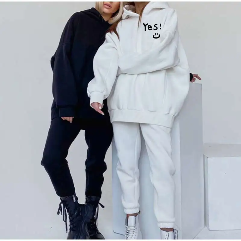 Женский спортивный костюм с флисовой подкладкой, комплект из двух предметов, толстовка с капюшоном и штаны для бега большого размера, Женский Повседневный Спортивный костюм на осень 2021