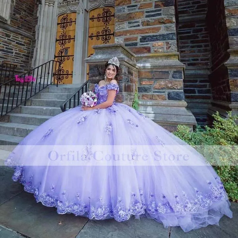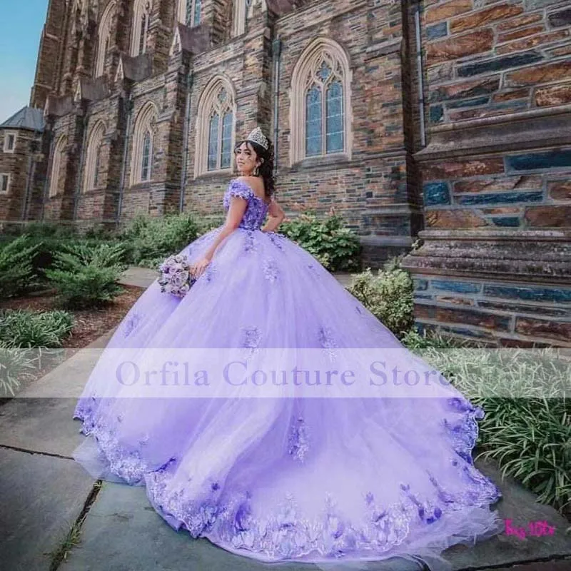 Фиолетовые платья с открытыми плечами и бусинами для Quinceanera, б...