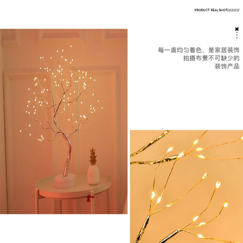 Ночник с медным проводом и 2021 светодиодами, сказосветильник светильник на дерево, украшение для дома, ночник с питанием от USB и питанием от батарейки для спальни, прикроватная настольная лампа