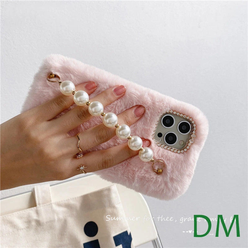 PopuplarPearl bracelet chain diamond rabbit fur case